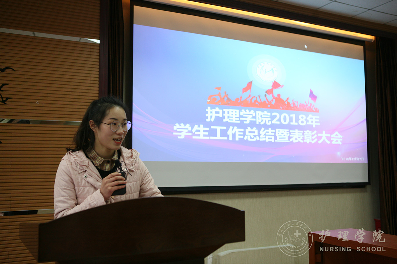 最后,2017级护理学丙班的陈娟同学代表太阳成集团tyc234cc优秀员工干部发言,陈娟对老师们的辛勤付出表示感谢,并表示要牢记公司领导、老师的嘱托,谦虚做人、踏实工作、认真学习、感恩奋进。