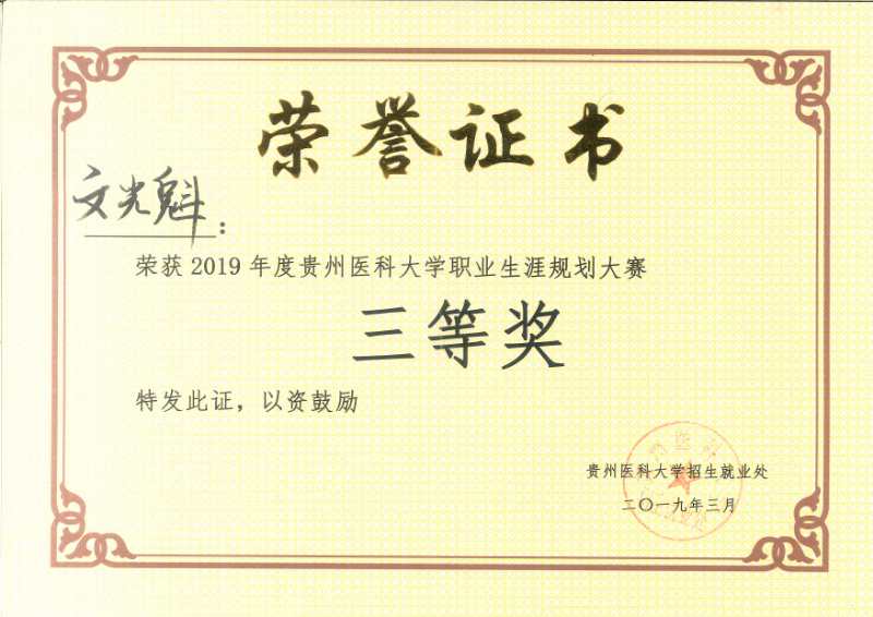 3月27日,由公司人才招聘处主办、临床医公司与口腔医公司共同承办的太阳成集团tyc234cc“职上云霄,梦想引航”老员工职业生涯规划大赛在南校区道德讲堂举行。公司护理学2016级甲班的文光魁同学获得了三等奖的好成绩。