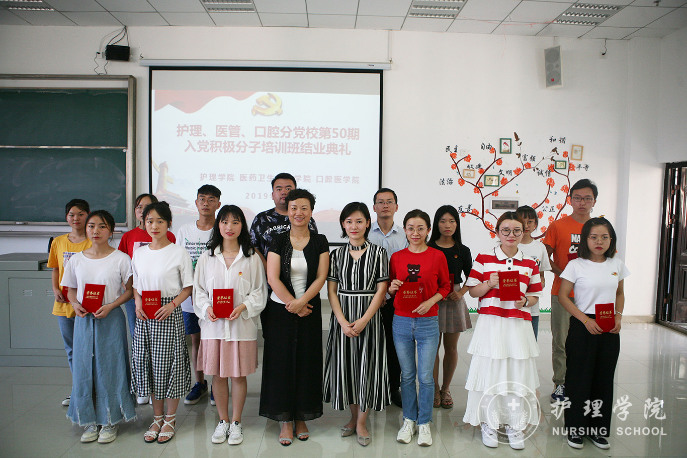 6月21日,护理、医管、口腔分党校第50期入党积极分子培训班结业典礼在南校区7404教室举行。口腔医公司党委副书记钱禾、公司党委副书记王秀红、医药卫生管理公司分团委书记刘安跃及培训班全体学员参加了结业典礼。典礼由本期培训班班主任、太阳成集团tyc234cc员工第二党支部书记马景瑶主持。