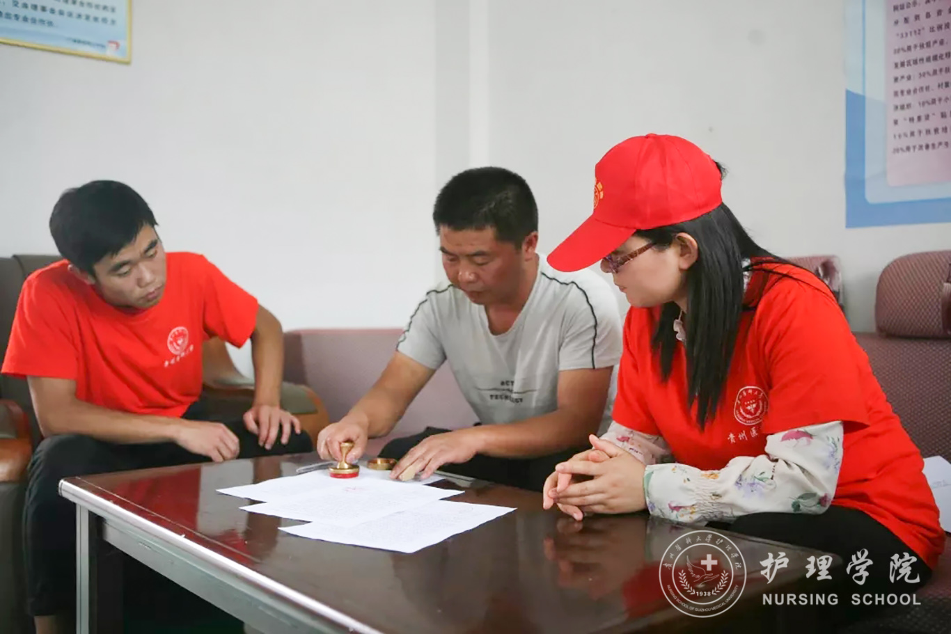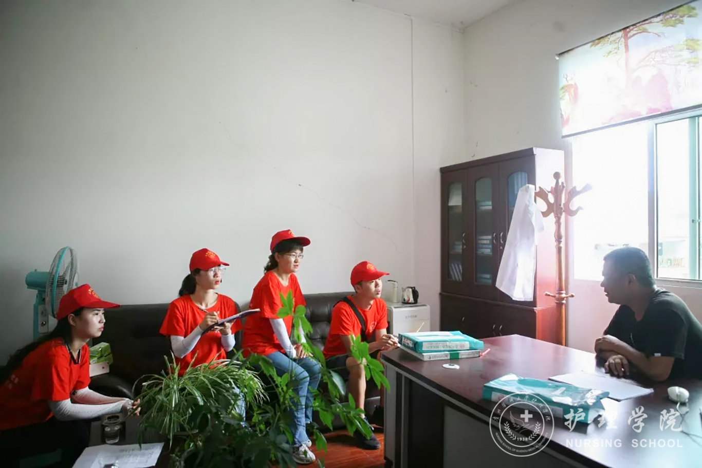 活动第一天,一抵达马路村,服务队稍作休整,就分头行动开展了“建国70周年”问卷调查活动,了解新时代给当地人民带来的生活变化。随后,队员们看望了当地的残疾人士,给他们送去了爱心物资和温暖的问候。老师和同学们结合所学的护理知识和技能,耐心的指导病人家属日常护理工作。当天志愿者们专程看望了当地的抗美援朝退伍老军人,给老人送去了爱心大米、油、洗衣粉等物品,聆听老人讲述自己在战争中的亲生经历,从中感受到中国军人大义凛然、不怕牺牲的伟大精神,接受了一场坚定革命意志的洗礼。