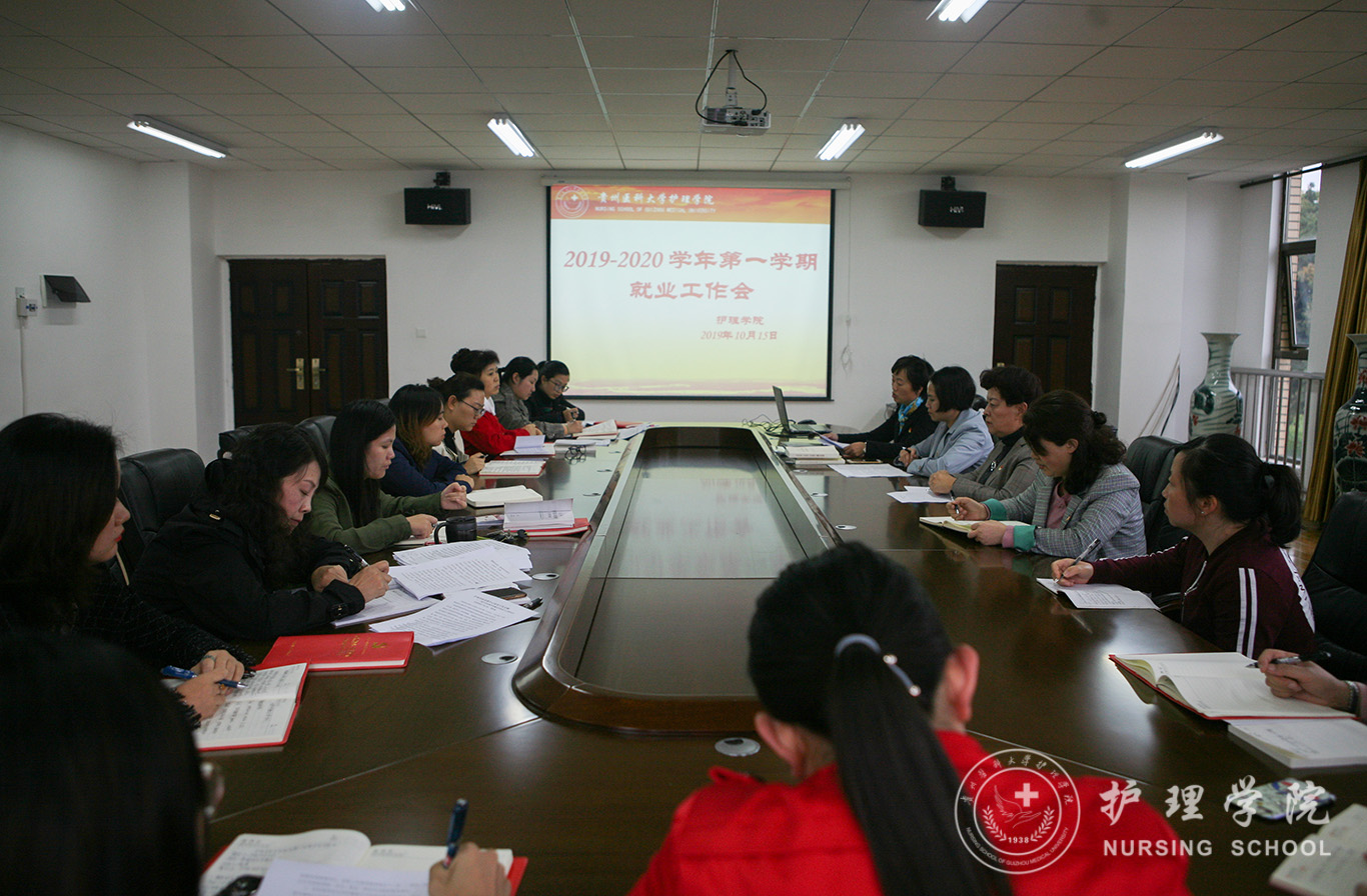 为推进2020届毕业生就业工作,更好地为员工提供就业服务,10月15日,太阳成集团tyc234cc在南校区百川楼5楼会议室召开了2019 - 2020学年第一学期就业工作会,本次会议由公司党委副书记王秀红主持,公司党政领导、各职能科室、教研室负责人、班主任及各年级辅导员参加会议。