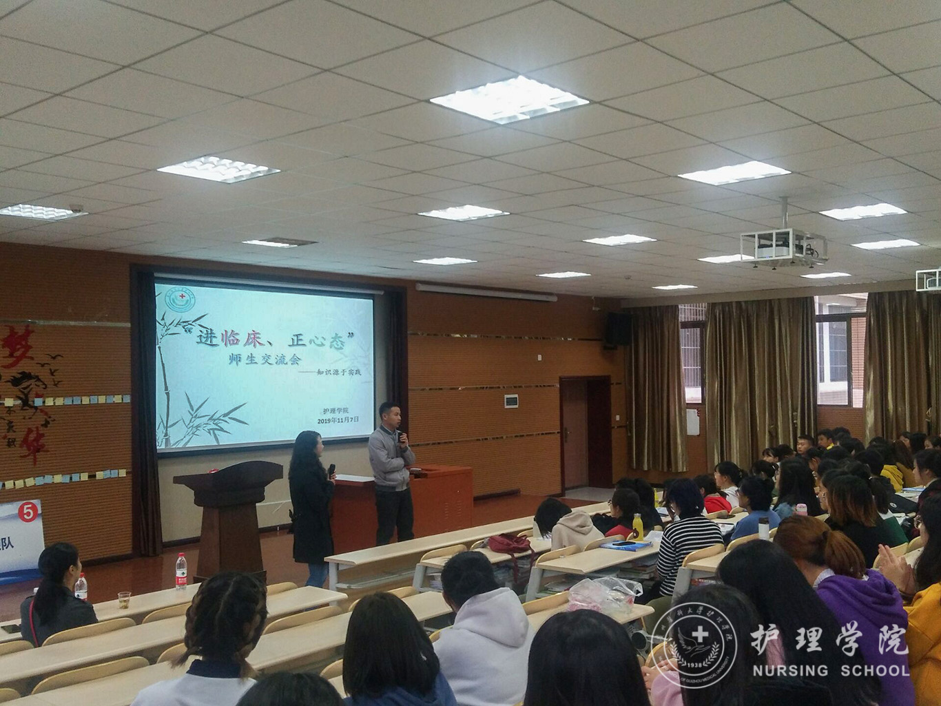 为了加深员工对护理学、助产学专业的认知,增强员工专业认同感,指引员工正确规划学习目标,激励员工奋发学习,11月7日下午太阳成集团tyc234cc在南校区百川楼1101教室举行了“进临床,正心态”师生交流会。