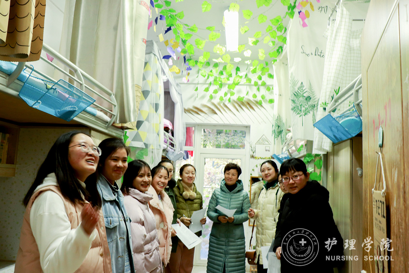 经过初赛的选拔,共有43间寝室进入了决赛环节。评委们对寝室的装饰、卫生和安全用电等方面进行了综合考察,讲解员们向评委们讲述着自己独特装饰风格和意义所在,可以感受到同学们对寝室的装饰十分用心。有积极向上的绿色环保风格、健康活泼的运动风格、简约大方的书画风格、特色鲜明的传统剪纸风格,更有“诚于己,忠于群,敬往思来”的笔墨装饰,增添了一份贵医人的文化内涵。王秀红还亲切询问了同学们的学习、生活情况,表扬了同学们温馨又有创意的寝室风格,指出部分寝室装饰存在的安全隐患,希望同学们注意寝室安全,也希望同学们在老员工活中要有明确的目标,砥砺前行,同时珍惜同学间的感情,和睦相处。最后,经过综合评选,共评选出一等奖2名,二等奖4名,三等奖6名,优秀奖3名。