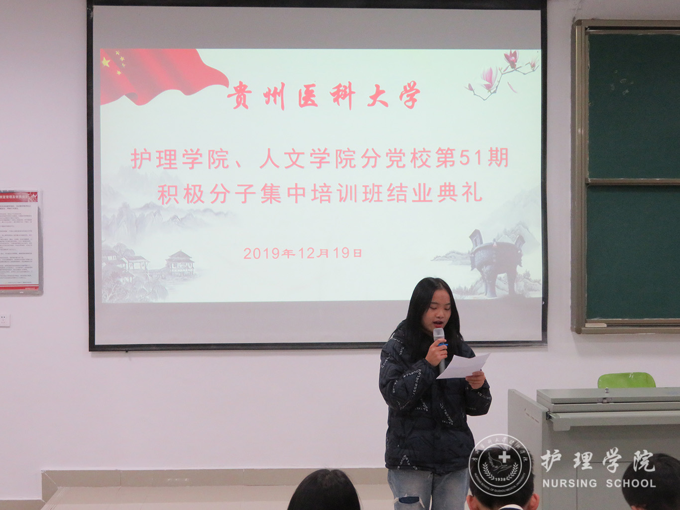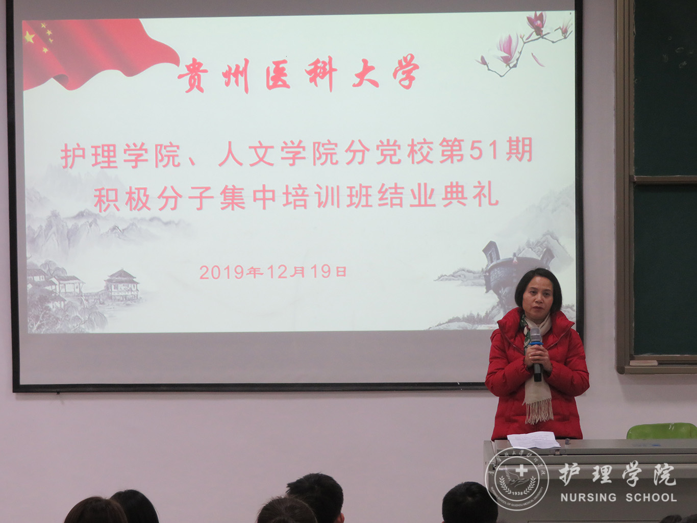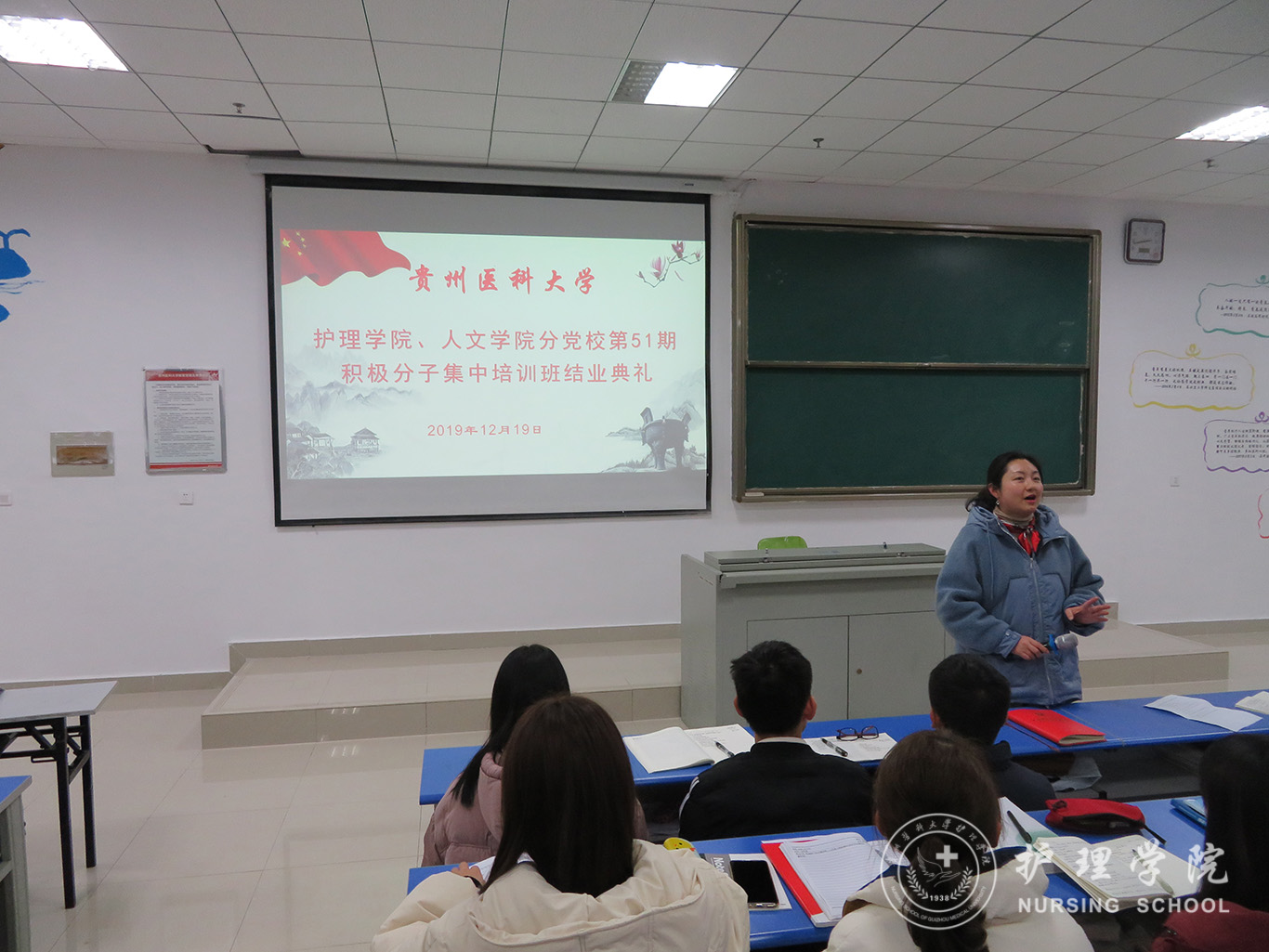12月19日,太阳成集团tyc234cc、医学人文公司分党校第51期入党积极分子集中培训班结业典礼在南校区广德楼1301教室举行。公司党委书记杨英、副书记王秀红、本期培训班班主任曾敏及全体学员参加了典礼,典礼由王秀红主持。