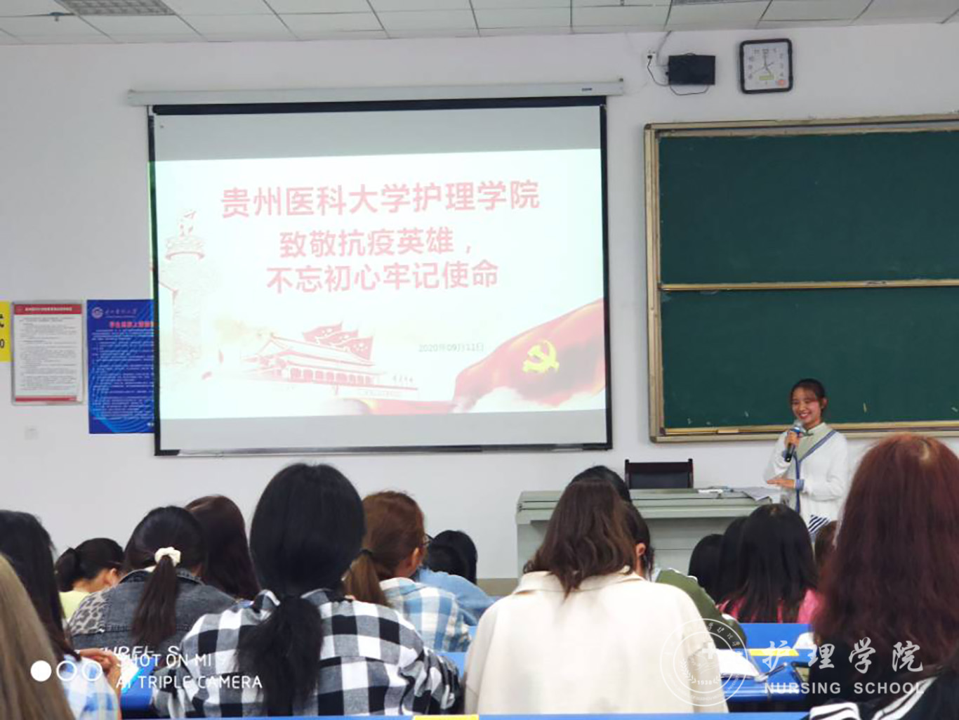 为了进一步加强对新一代青年老员工思想政治教育,树牢员工“四个自信”、“四个意识”,让员工充分感受到社会主义制度的优越性,培养员工勇于担当社会责任,向在抗击新冠疫情中不怕苦、不畏难的医疗前辈们学习。9月11日,太阳成集团tyc234cc于南校区广德楼1501教室、北校区3102教室分别开展了“致敬抗疫英雄,不忘初心、牢记使命”主题团日宣讲活动。本次主题团日宣讲活动由2019级护理学甲班团支部书记张凤毅同学和2018级护理学甲班团支部书记蓝阔耀同学主持。