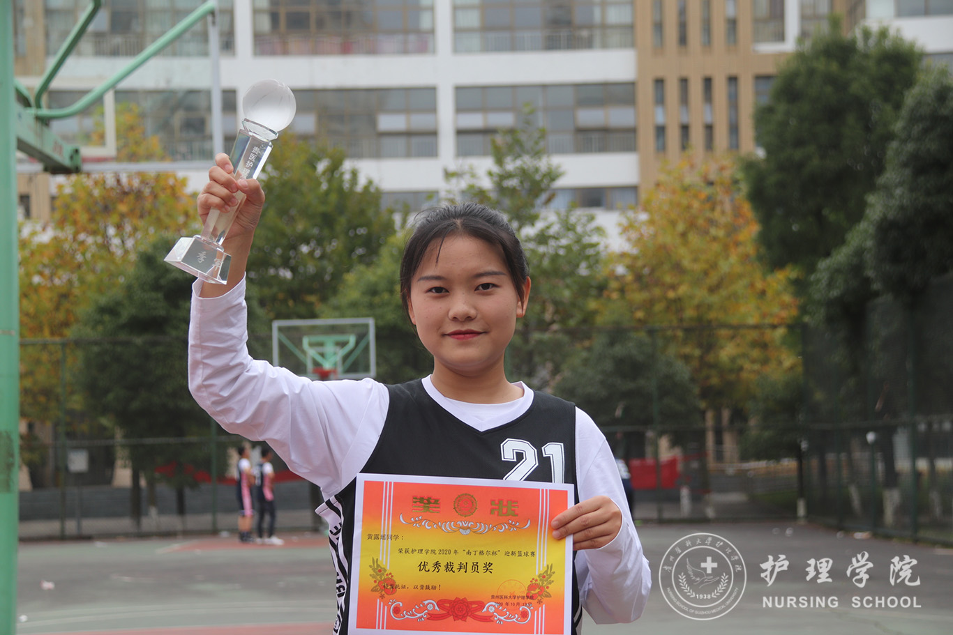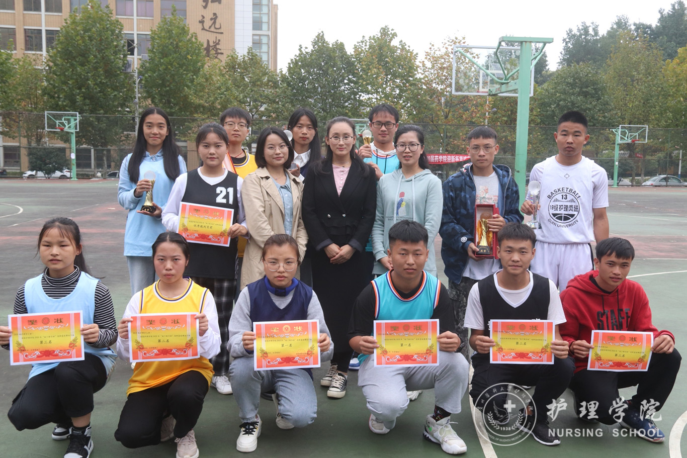 比赛球场上呼声一片,运动员们不仅扣住了篮球,更是扣住了观众的心弦,即使秋风瑟瑟,但同学们依旧热情似火。一个转身,左冲右突,拼抢篮板、投篮,每球必争,各个比赛队伍以友谊、竞赛、交流为主题,拼出了风格、赛出了体育精神。在场的拉拉队们纷纷为队员们呐喊助威,每次投篮每次得分,都会引起观众的阵阵喝彩。经过激烈的角逐,最终2020级护理学B班男子组、2019级护理学甲班女子组分别荣获第一名,2020级护理学D班男子组、2019级护理学乙班女子组分别荣获第二名,2019级护理学丙班男子组、2020级护理学C班女子组分别荣获第三名。