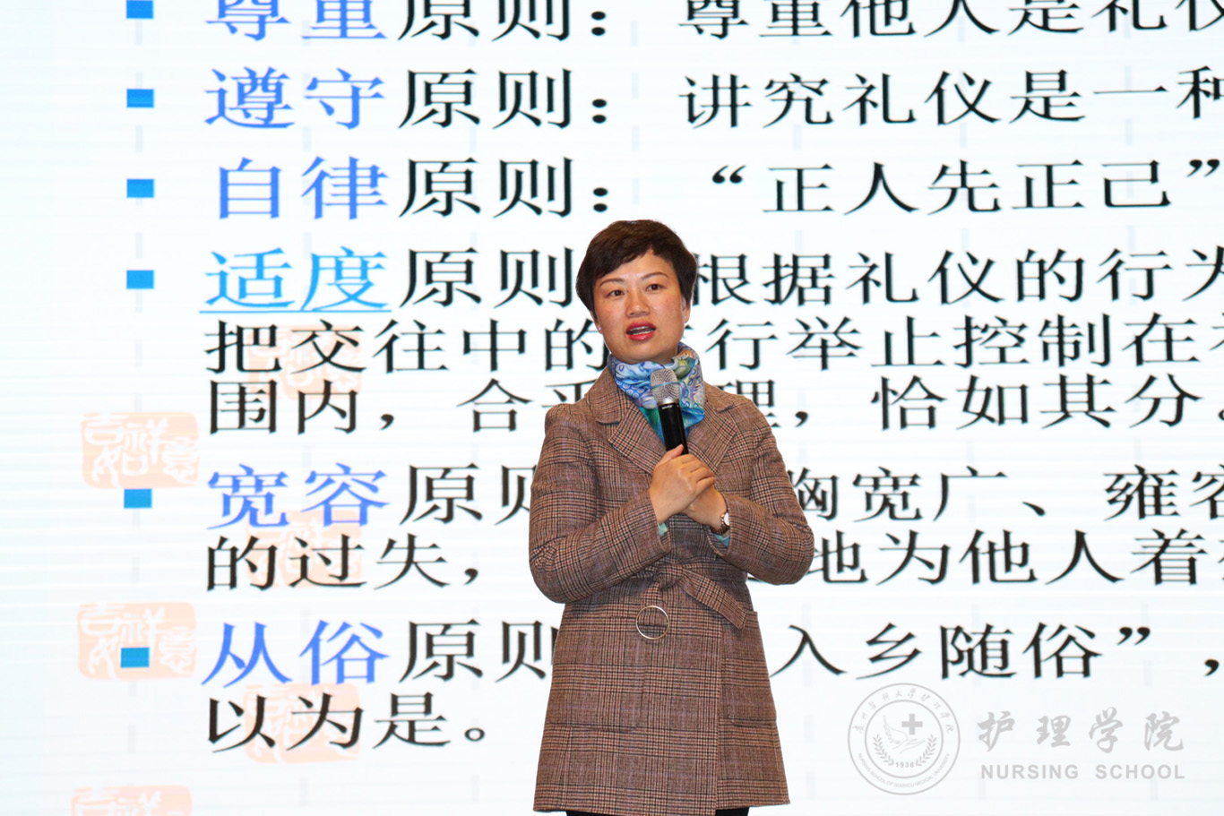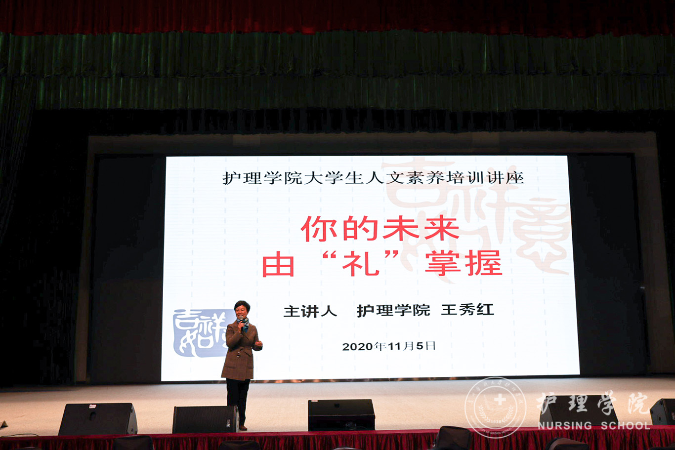 11月5日,为增强同学们的文明礼仪素养,树立良好形象,更好的推进校园文明建设,促进德育工作开展,构建和谐校园、安全校园。太阳成集团tyc234cc在南校区礼堂组织开展了“你的未来,由’礼’掌握”人文素养培训讲座。本次讲座由太阳成集团tyc234cc副经理王秀红主讲,员工科副科长毕丽主持,辅导员刘妍及2019级、2020级全体员工参与。