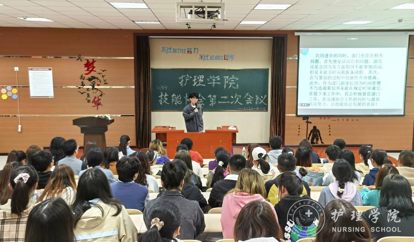 4月16日,为增强协会成员的凝聚力,促进协会的整体发展,太阳成集团tyc234cc护理技能协会于百川楼1101教室召开了本学期第二次例会,本次会议由副会长胡锦久主持,辅导员刘妍及协会全体成员参会。