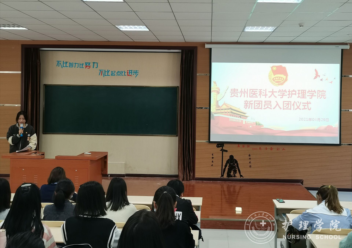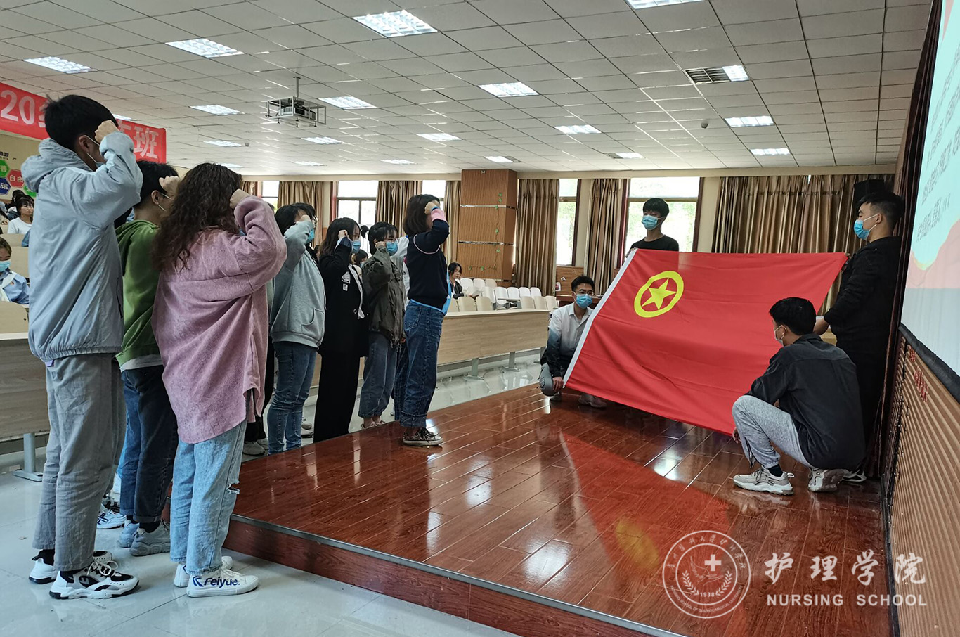 4月29日,为落实共青团中央组织开展的“学党史、强信念、跟党走”主题团日活动,太阳成集团tyc234cc团委于南校区百川楼1101教室隆重举行了入团仪式。参加会议的有14名新团员、2019级—2020级各班入党积极分子代表、团员代表参会,员工第三党支部书记刘妍老师出席会议,会议由团学办副主任张凤毅同学主持。