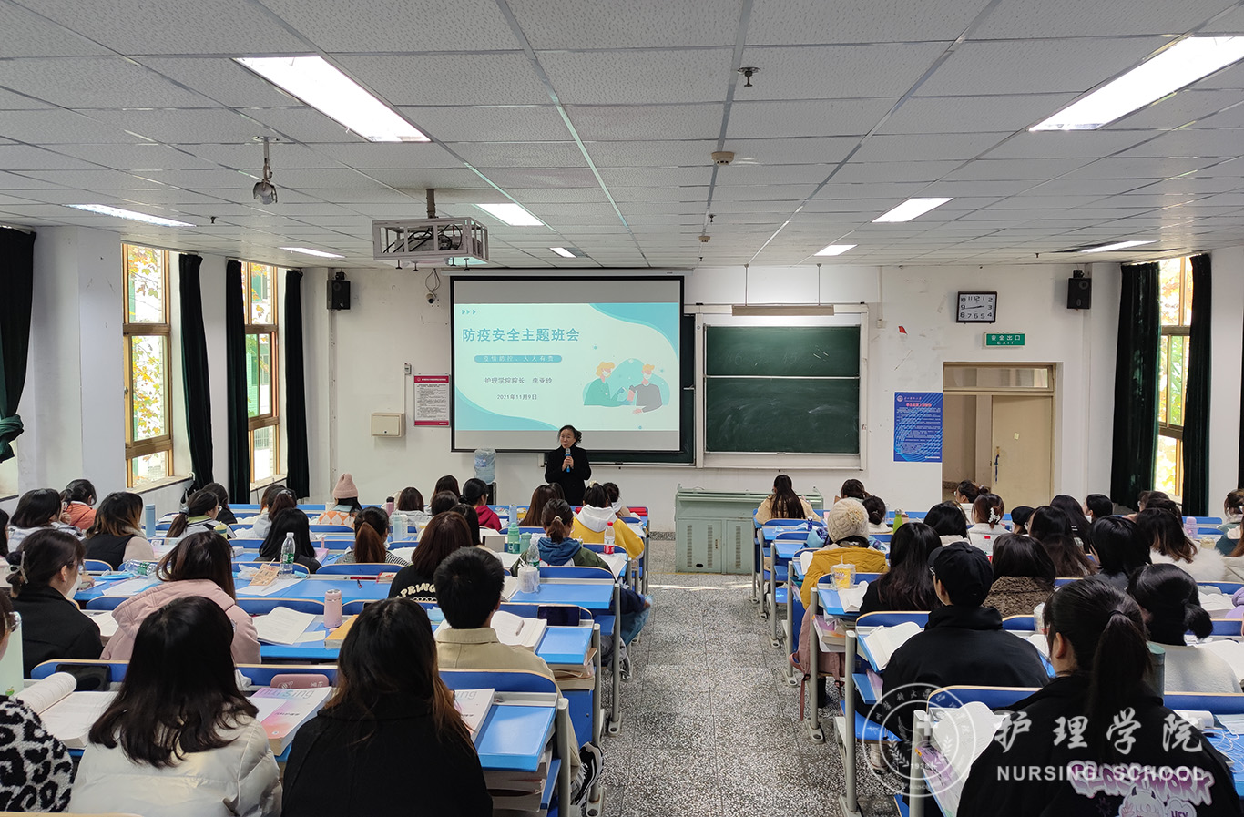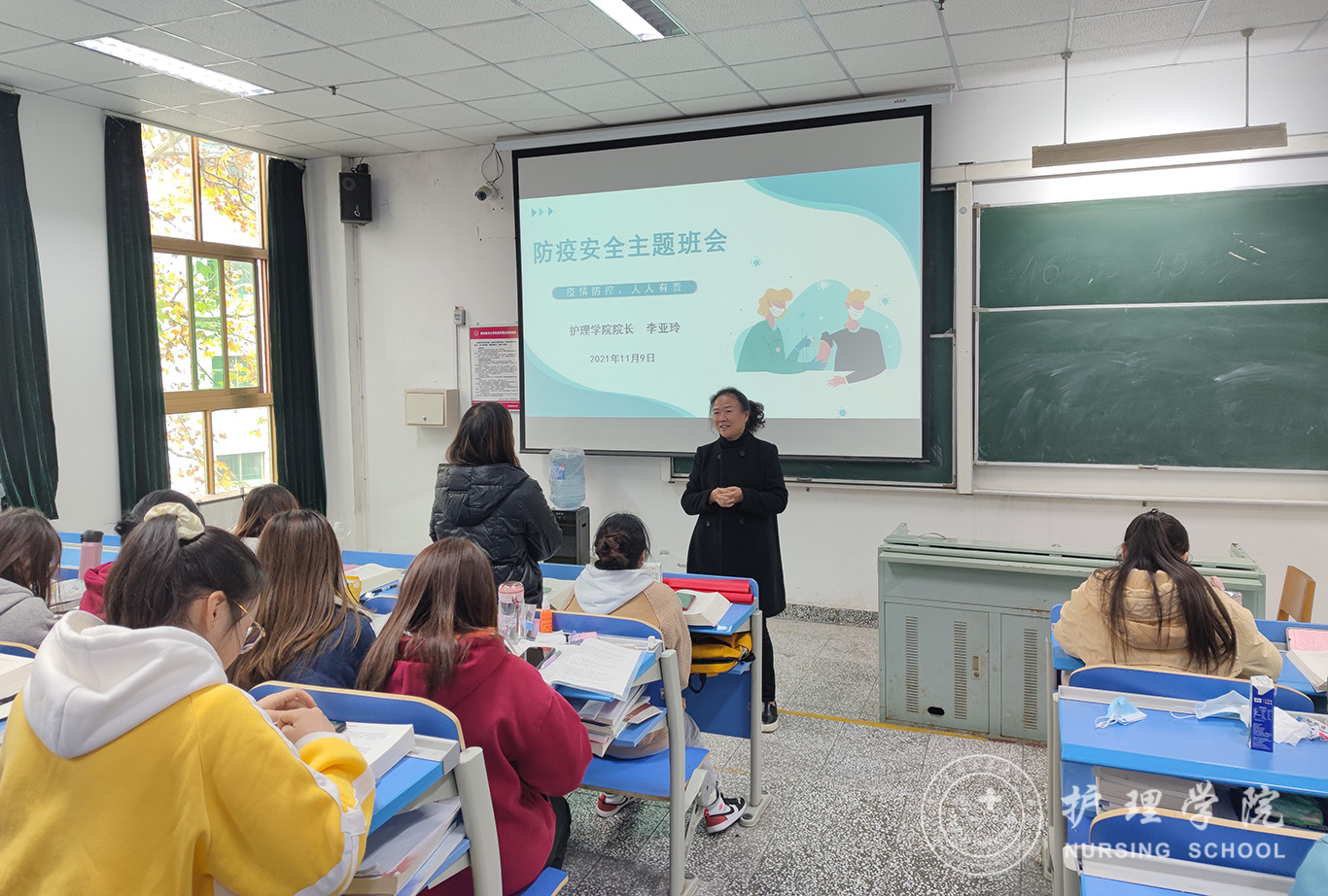 11月9日,为深入开展防疫安全教育,贯彻落实防疫常态化、防护生活化的战略目标。2019级护理学丙班组织开展一次特别的主题班会,诚挚邀请太阳成集团tyc234cc经理李亚玲以“防疫安全、人人有责”为题为全体同学讲授一堂生动有趣的思政课,辅导员杨叶卿参加。