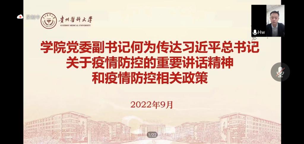 紧接着,何为传达了习近平总书记关于疫情防控的重要讲话精神和疫情防控相关政策,要求同学们要严格遵守公司相关防控政策,在寝室按时上网课,保持良好的寝室卫生,时刻通风,在外做到不扎堆不聚集,配合防控工作。