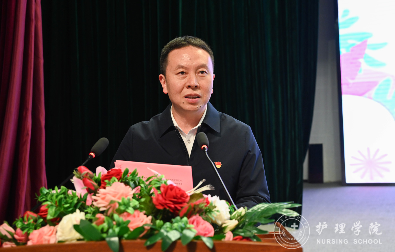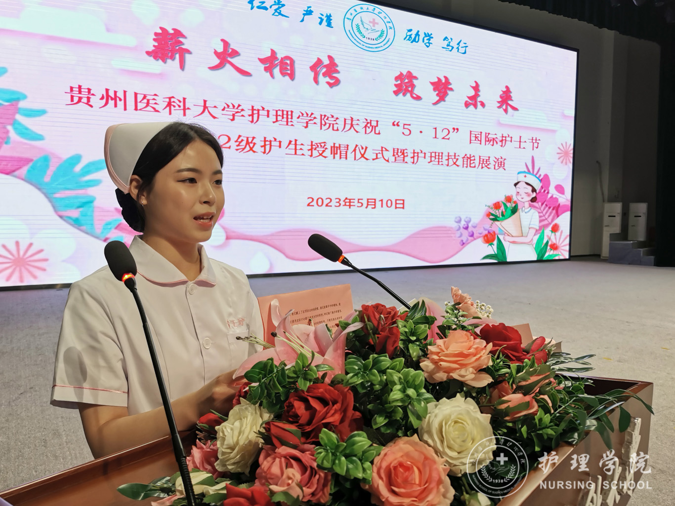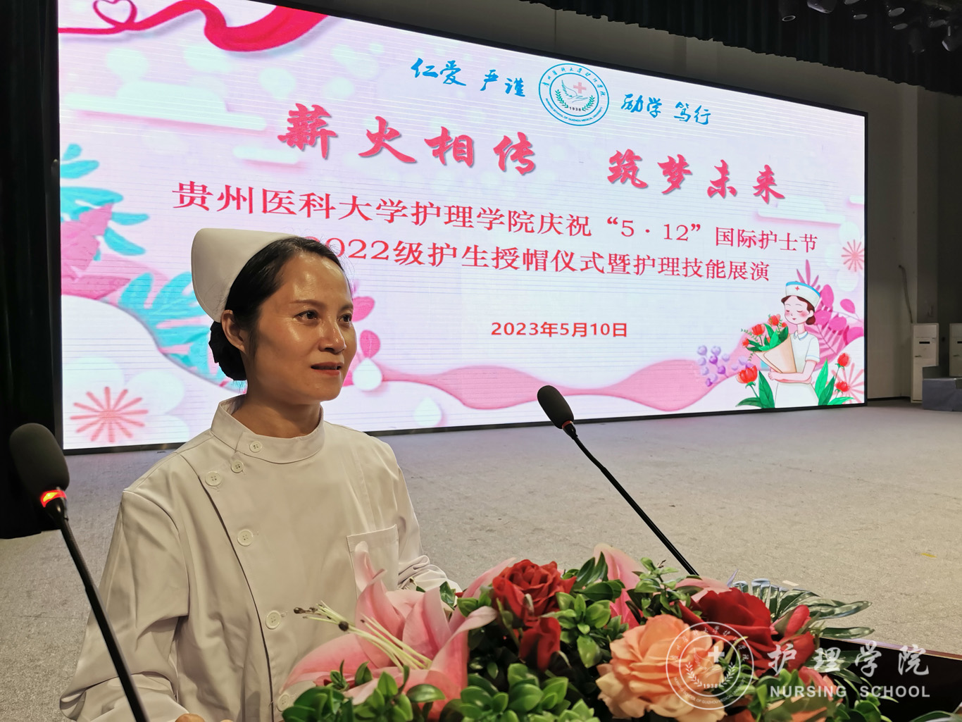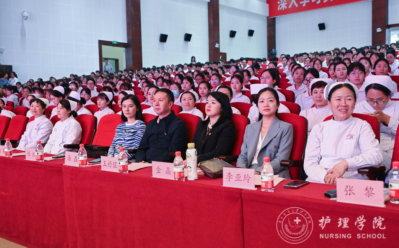 汤磊为本次活动致辞。他对公司一直以来的工作给予了肯定,向同学们提了三点要求:一是要用习近平新时代中国特色社会主义思想凝心铸魂,坚定理想信念,磨练意志品质,做新时代护理学事业发展知而行之的行动者;二是要向现代护理学事业伟大先驱南丁格尔学习,甘于奉献、救死扶伤,做新时代护理学事业发展坚而守之的继承者;三是不忘学医初心,牢记健康使命,恪守校训、秉承贵医精神,做新时代护理学事业发展奋而起之的奋斗者。