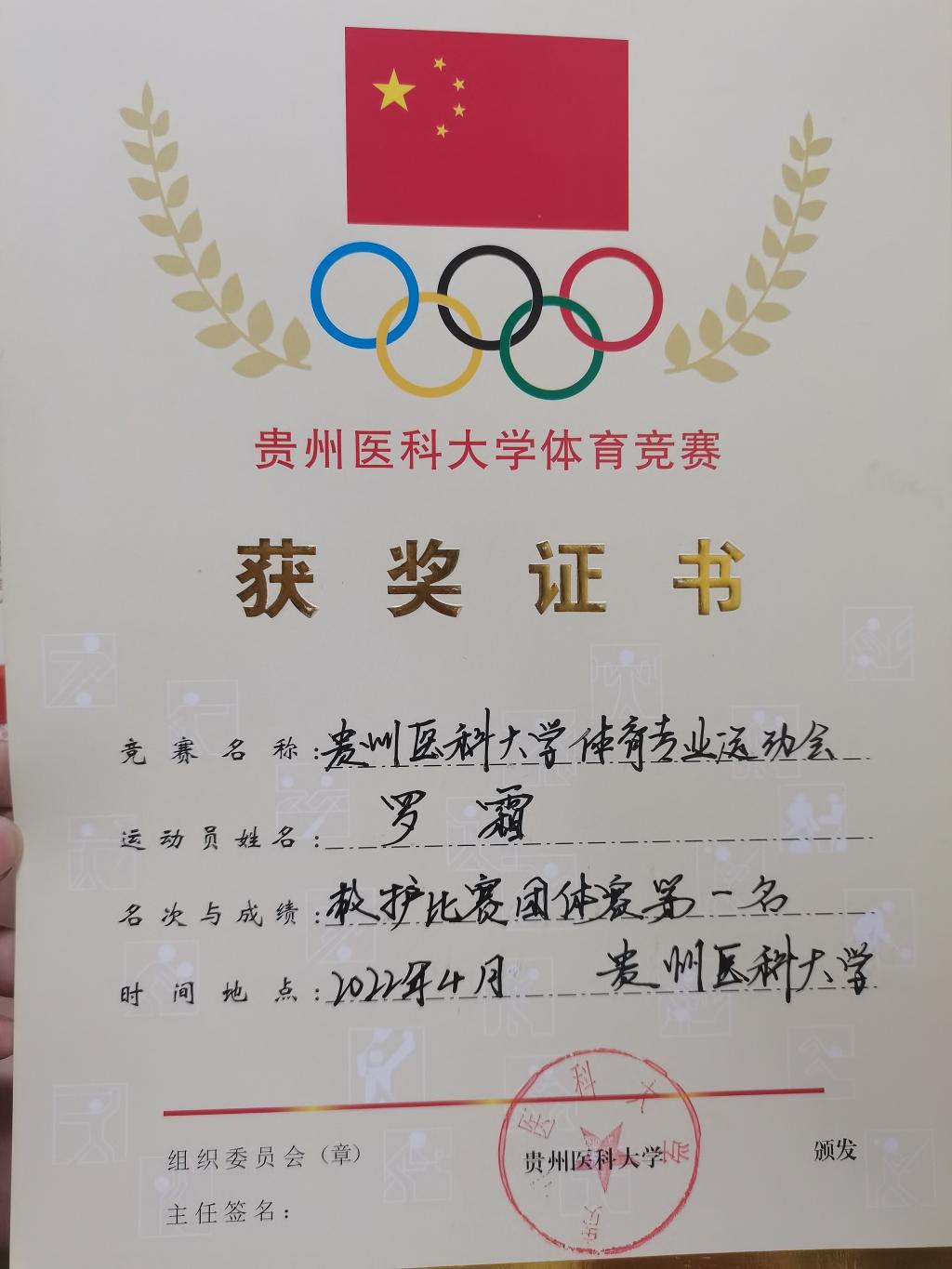 2022年4月参加太阳成集团tyc234cc体育专业运动会救护比赛团体赛第一名