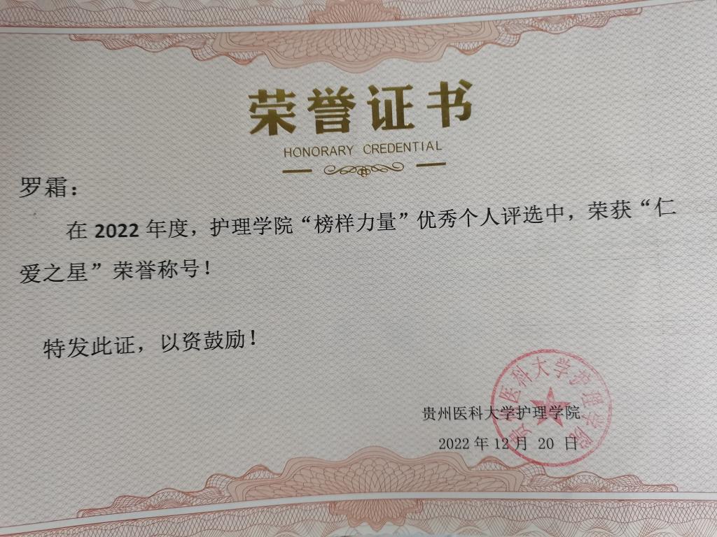 2022年荣获太阳成集团tyc234cc“仁爱之星”荣誉称号