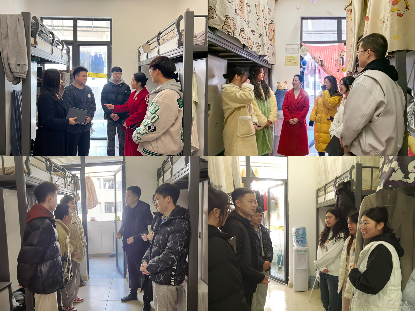 3月4日,为提升教学质量,创造更加优良的教学和学习环境,建设更加安全整洁的寝室环境,进一步夯实新学期员工管理工作。公司党委书记杨英、经理李亚玲、党委副书记兼纪委书记何为、副经理刘志燕带领各教研室主任及全体辅导员以深入课堂、走访寝室等形式开启新学期查课查寝工作。