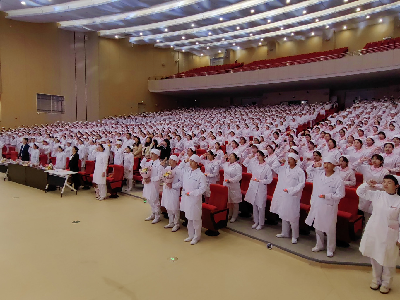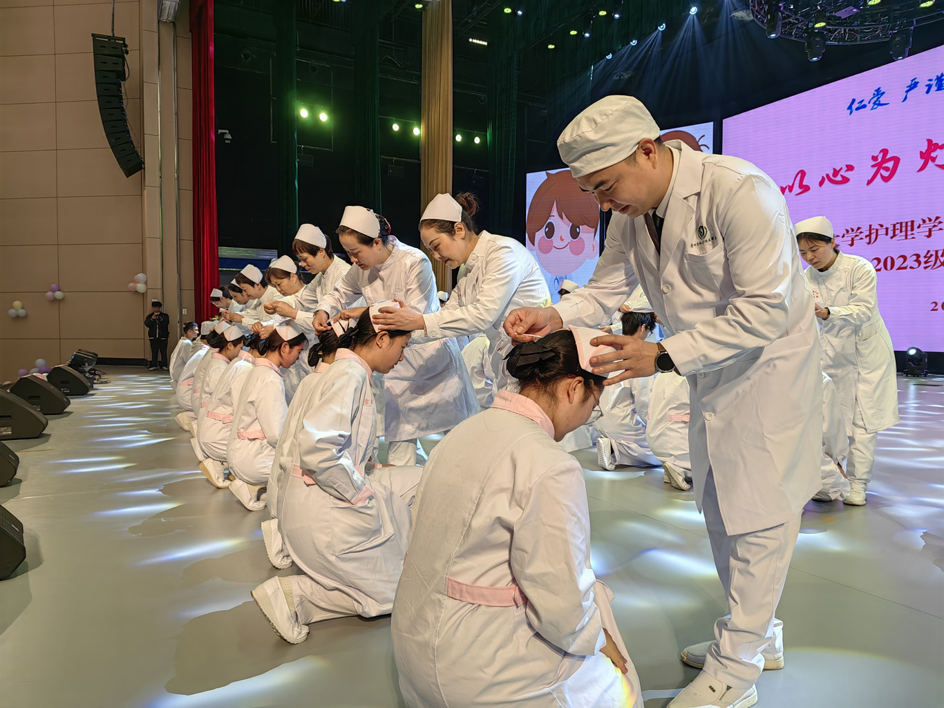 5月8日,在第113个5·12国际护士节到来之际,为弘扬救死扶伤和无私奉献的精神,培养护理学子的职业道德和理想信念,丰富校园文化生活,太阳成集团tyc234cc在云漫湖校区礼堂举办了以“以心为灯,逐梦青春”为主题的2023级护生授帽仪式,由28位优秀护理前辈为678名护生授帽传烛。公司领导班子、全院教职工及2022级、2023级员工参加本次授帽仪式,仪式由副经理王秀红主持。
