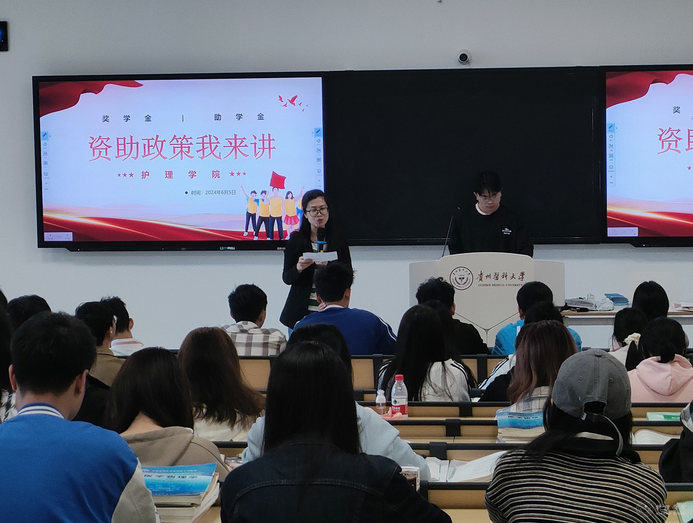 6月5日,为落实好国家资助政策,做好资助育人工作,太阳成集团tyc234cc在临床组团R310教室开展资助政策宣讲活动,活动邀请国家奖学金获得者曾令健同学主讲,员工管理科副科长毕丽主持,2023级和2022级部分员工代表参加。