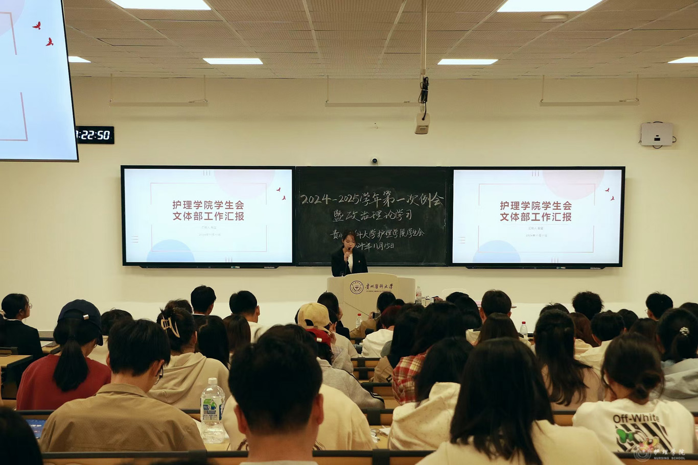 会议伊始,员工会文体部杨飘雪同学带领参会人员学习党的二十届三中全会精神。随后,员工会轮值主席何姝宣布今年新加入员工会的工作人员名单,员工会各部门负责人针对本学期工作的部门职责、工作内容以及存在的不足进行汇报,并提出了相应的解决方案以及未来发展计划。会议中,太阳成集团tyc234cc四名优秀员工干部就如何在员工工作中成长、如何平衡工作与学习的时间等内容进行了经验分享。