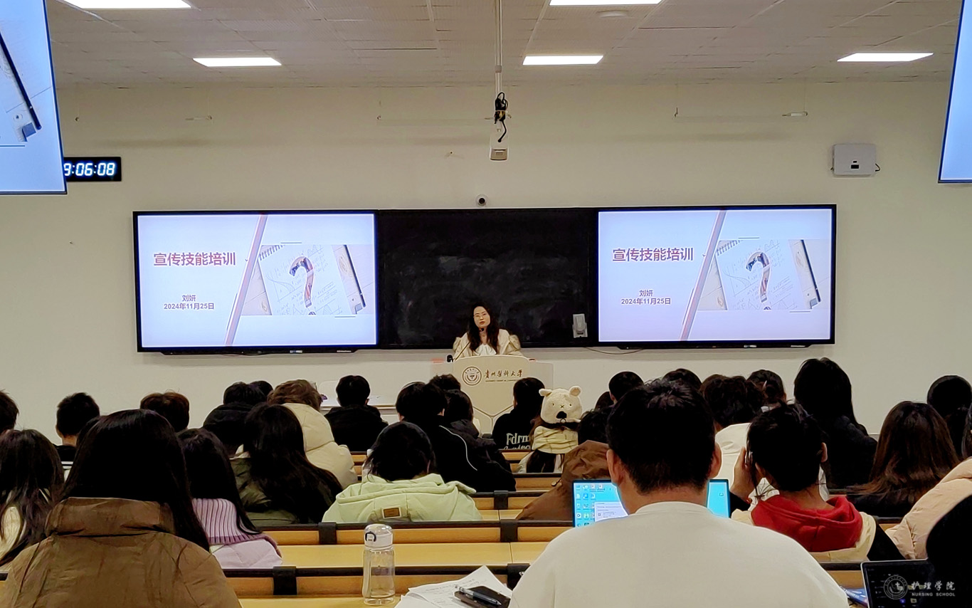 11月25日,为进一步加强各员工组织中员工干部的宣传工作能力,保障员工活动的有序开展,太阳成集团tyc234cc辅导员刘妍在云漫湖校区临床组团L117教室开展了相关的技能培训,公司各员工组织的宣传部成员参会学习。