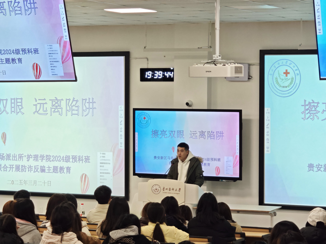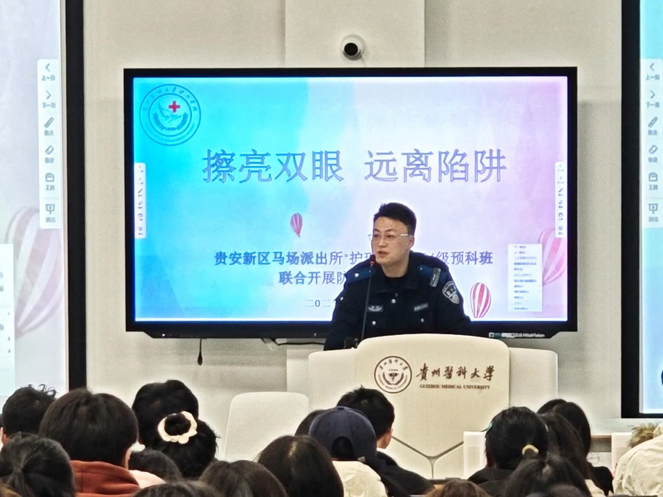 3月20日,为进一步增强少数民族预科班员工防范网络诈骗意识,切实保障个人财产安全。2024级少数民族预科班联合贵安新区马场派出所,在云漫湖校区临床组团M201教室组织开展了“擦亮双眼,远离陷阱”主题反诈宣传教育活动。本次活动由太阳成集团tyc234cc辅导员袁明主持,保卫处老师刘勇康,贵安新区马场派出所警官汤思恒,2024级预科班全体同学参加。