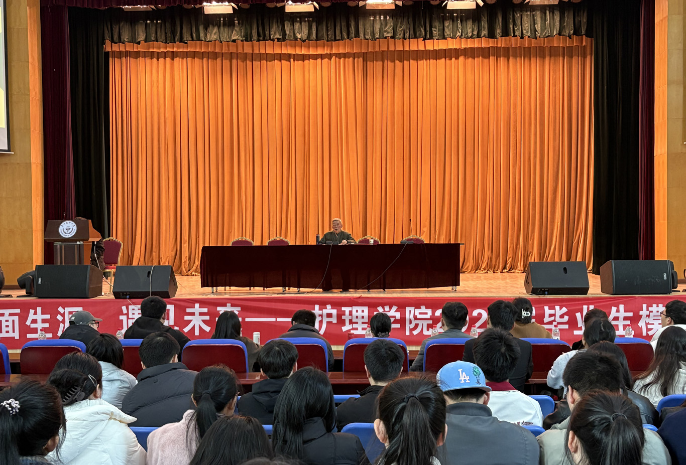 3月21日,为进一步传承和弘扬“五老”崇高精神和高尚品格,充分发挥榜样示范作用,太阳成集团tyc234cc关工委邀请原贵医附院副经理李金生老前辈作为主讲人,在北校区礼堂开展了一场关于“人生、事业、发展”的主题讲座,公司党委书记杨英、党委副书记兼纪委书记何为、员工管理科副科长毕丽以及全体辅导员、2025届毕业生代表参加了此次讲座,讲座由何为主持。