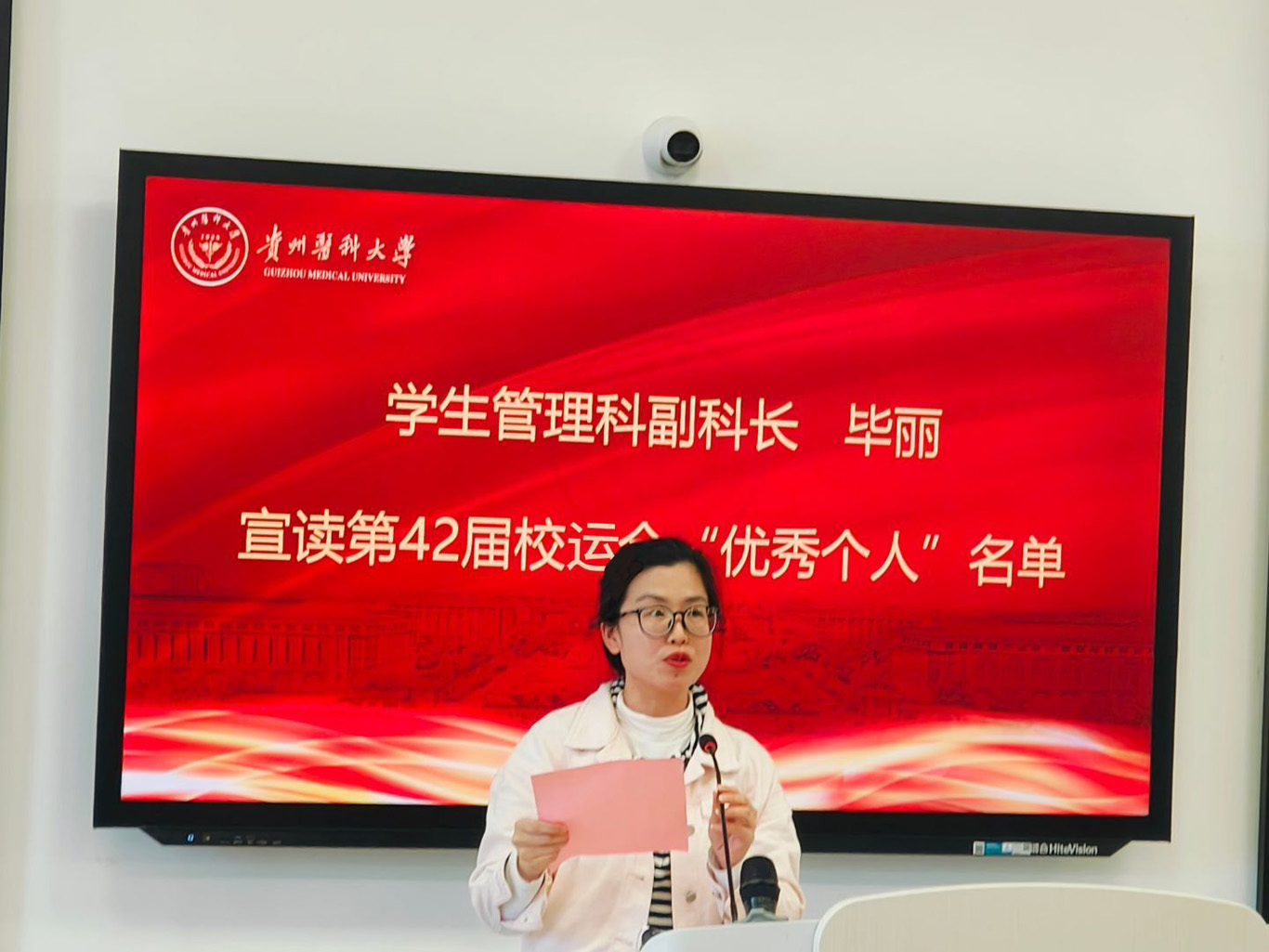 随后,毕丽宣读了公司第42届春季运动会院级“优秀个人”表彰名单,出席大会的各位老师为同学们颁发纪念品。