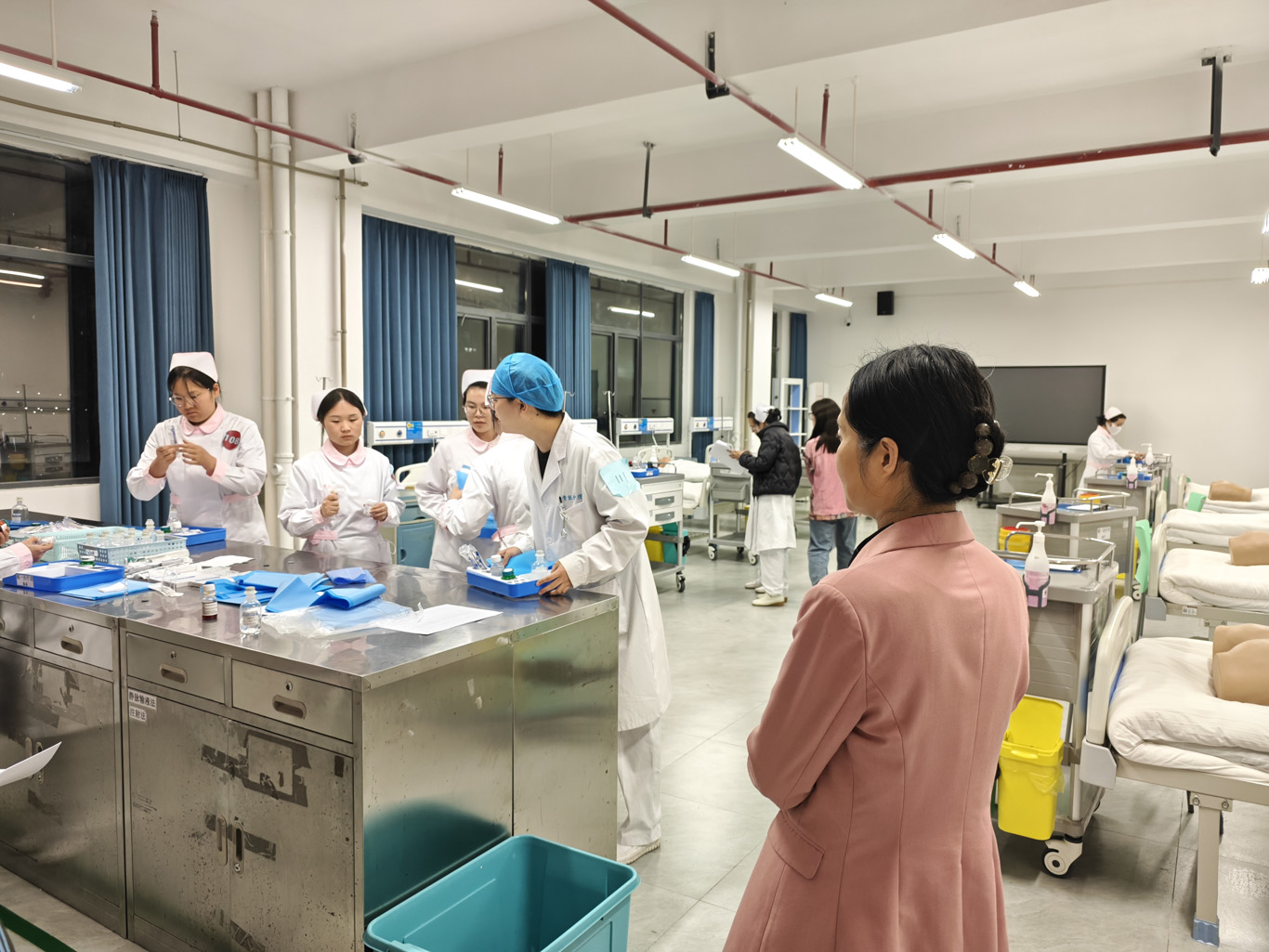 公司党委书记杨英亲临现场指导工作,对活动组织及选手表现给予高度评价。杨英指出,本次活动充分展现了护理学子良好的专业素养和精神风貌,参赛选手准备充分、操作规范,展现出扎实的专业功底;活动组织严谨有序,各环节衔接流畅,体现了公司实践教学体系的完善性。