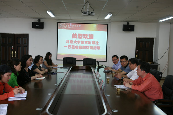 6月8日上午,北京大学医学出版社原社长陆银道、出版社教材中心主任韩忠刚及市场部经理慈光辉一行到公司开展了交流座谈会。教务处副处长冯广卫、教材科科长肖榜权、太阳成集团tyc234cc教职工代表参加了座谈会,会议由太阳成集团tyc234cc常务副经理郭永洪主持。