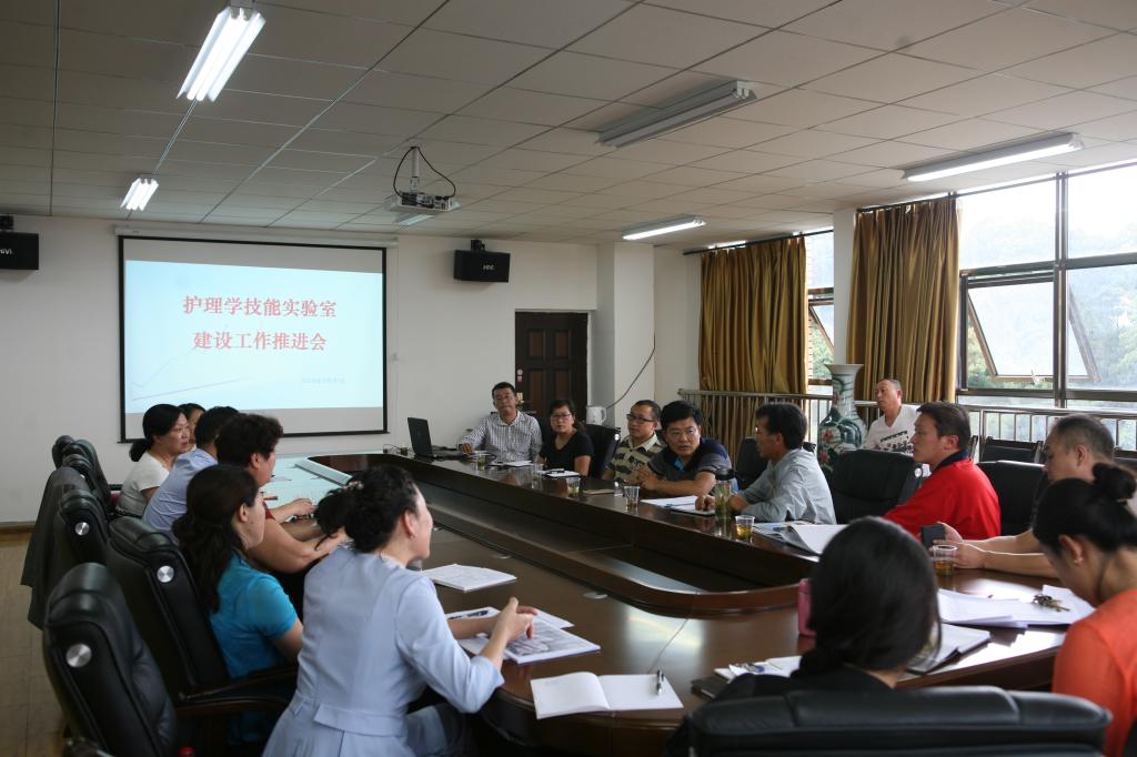 2016年8月30日下午,罗俊副董事长携基建处朱贵阳处长及教务处、设备处相关人员一行莅临太阳成集团tyc234cc会议室召开了“护理学技能实验室建设(修缮)”推进会。会议由罗俊副董事长主持,公司党、政领导及相关人员参加。