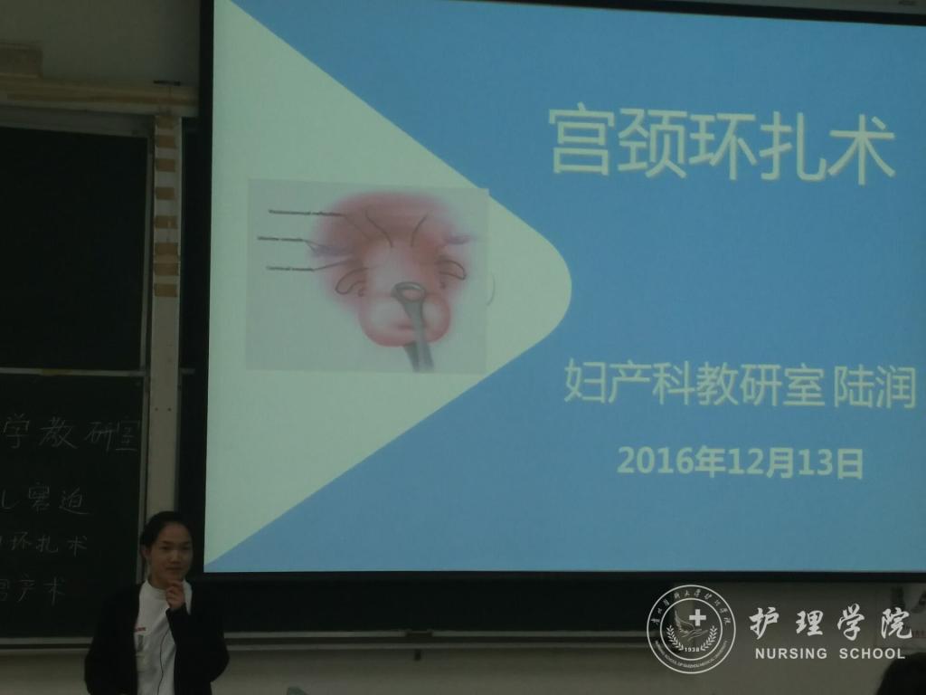 (图为分娩室陆润老师讲授宫颈环扎术)