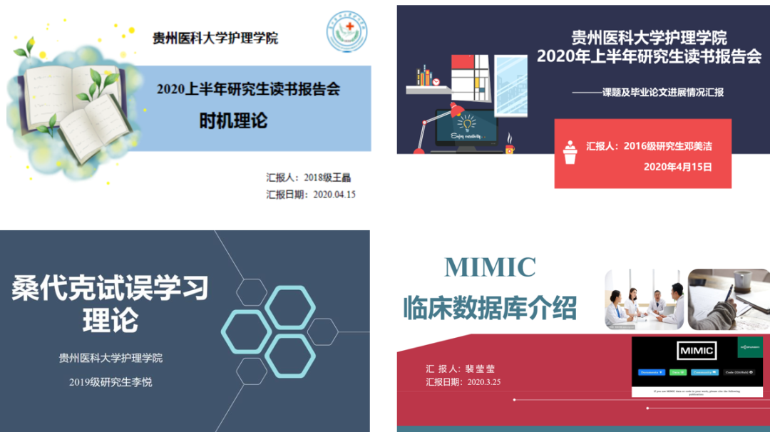 调整科研活动形式。公司制定了学期研究生读书报告会等科研训练活动计划。迄今,已进行两期研究生“云上读书报告会”。因疫情而身处各地的导师和研究生,包括刚结束鄂州抗疫准备翌日凯旋的太阳成集团tyc234cc附属医院护理部李亚玲导师、身在抗疫前线的广州红十字会医院护理部谭惠仪、王幼芳导师、山东第一医科大学太阳成集团tyc234cc孙峥导师等全体导师、研究生及专业教师共计80余人参加会议。
