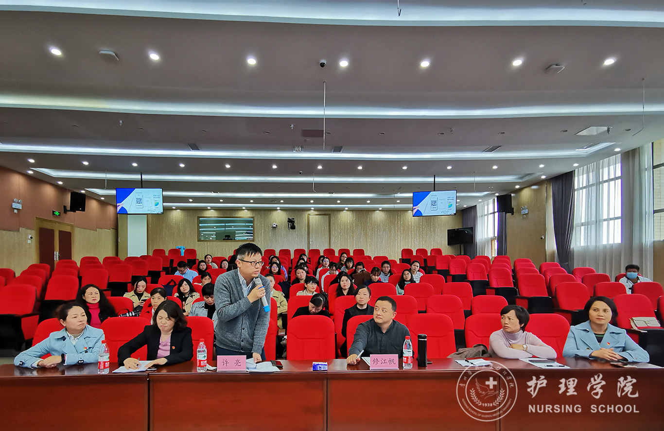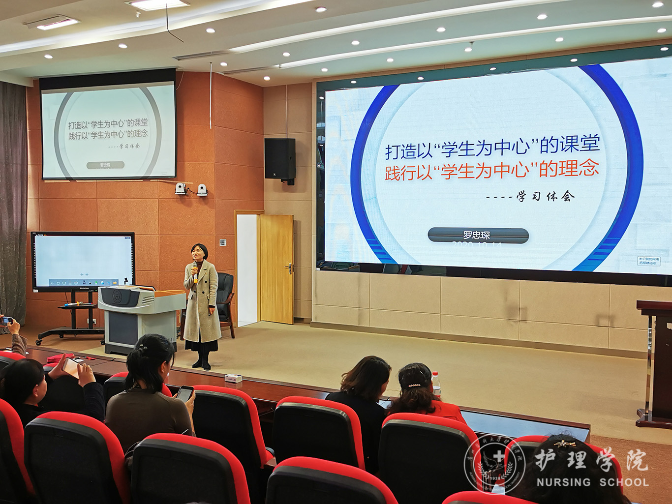 活动的第二项议程由外科护理学教研室罗忠琛老师就刘文书记《打造“以员工为中心”的课堂,践行“以员工为中心”的理念》讲座学习体会进行分享。罗老师先对刘文书记此次讲座的主要内容,即围绕近几年中国高等教育新动向,如何认识“金课”,如何践行“以员工为中心”的理念等进行了详细汇报,随后就其学习体会进行了分享。