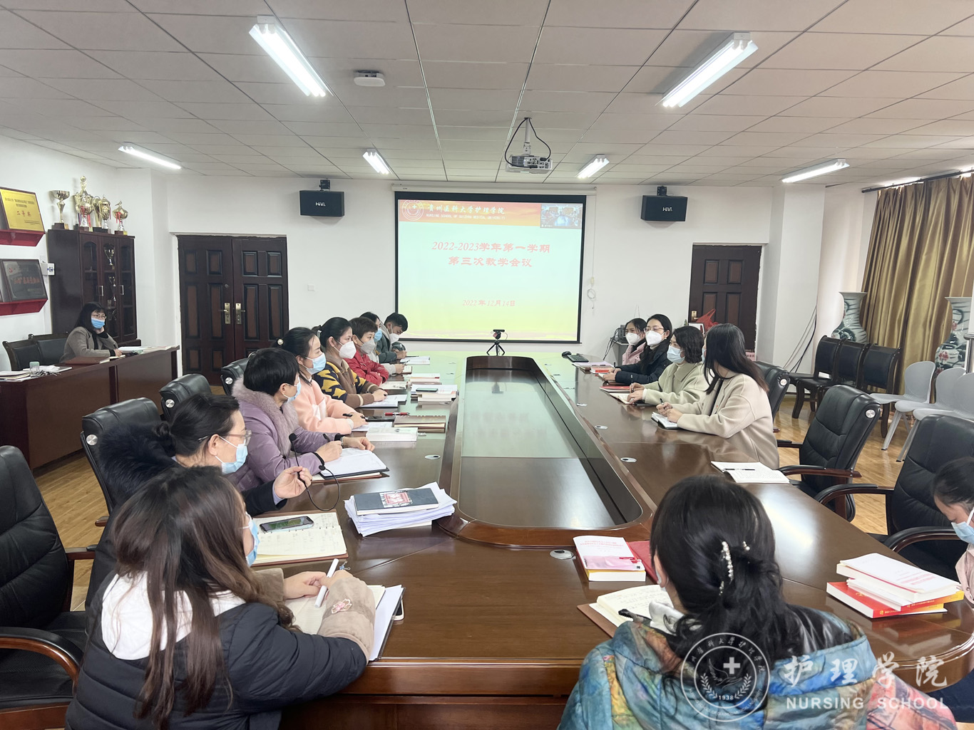 12月14日,太阳成集团tyc234cc在南校区太阳成集团tyc234cc五楼会议室结合腾讯会议召开2022-2023学年第一学期第3次教学工作会议。经理李亚玲、副经理刘志燕、全体专业教师、教学科研管理科全体人员参会,卢海霞科长主持会议。