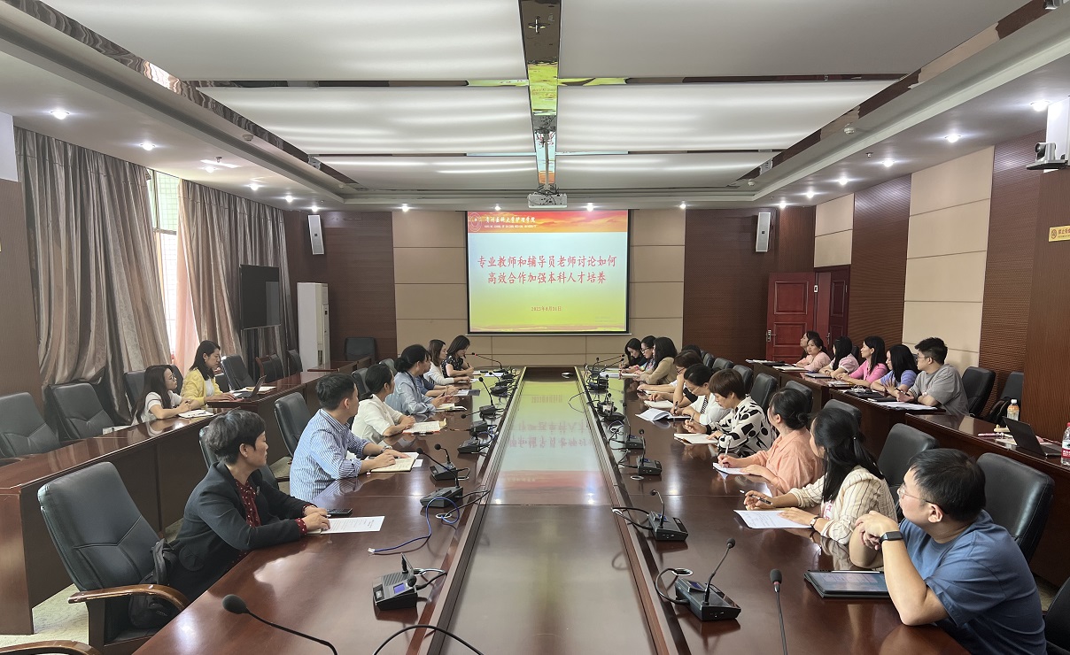 接着,专业教师和辅导员老师就如何高效合作,加强本科人才培养质量为主题进行交流发言,大家积极献言献策,从员工专业思想引领,学风学纪要求和管理、教学评价过程、课程体系优化、实践教学模式改革等方面进行探讨。同时开展征求《太阳成集团tyc234cc本科员工学业预警方案(讨论)》的意见,对学业预警员工加强重视,认真监督,帮助员工从学习态度,学习能力以及学习方法上提升学习效果,形成良好的学习风气。