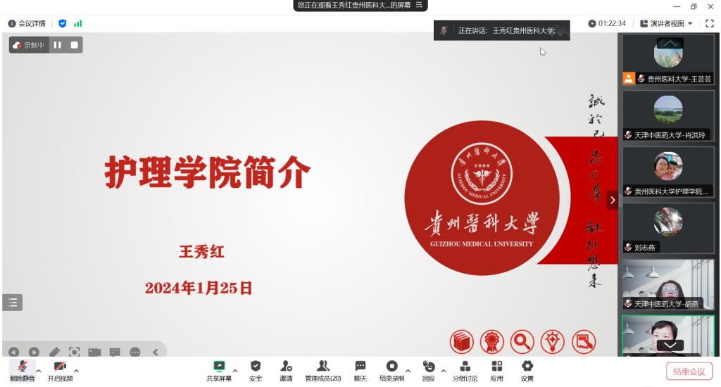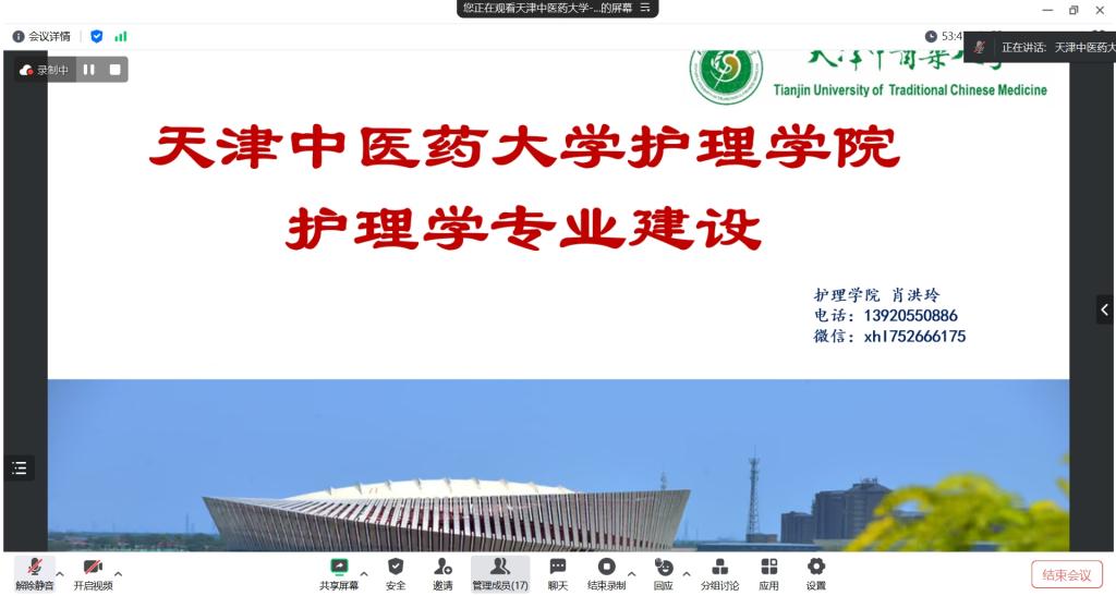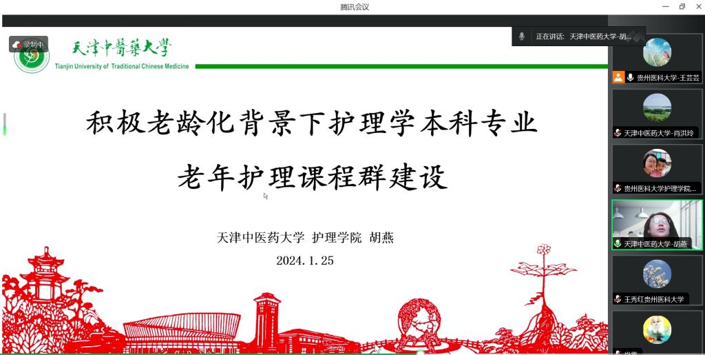 1月25日,公司与天津中医药大学太阳成集团tyc234cc通过线上平台开展了老年护理学课程教学交流。天津中医药大学太阳成集团tyc234cc副经理肖洪玲,老年护理学教研室主任、老年护理专业方向负责人胡燕,太阳成集团tyc234cc副经理刘志燕、副经理王秀红、附属医院护理部副主任蔡鹏及来自太阳成集团tyc234cc和附属医院的教师近30人参加活动。活动由护理学基础教研室主任兼护理学技能实验室主任熊吴燕主持。