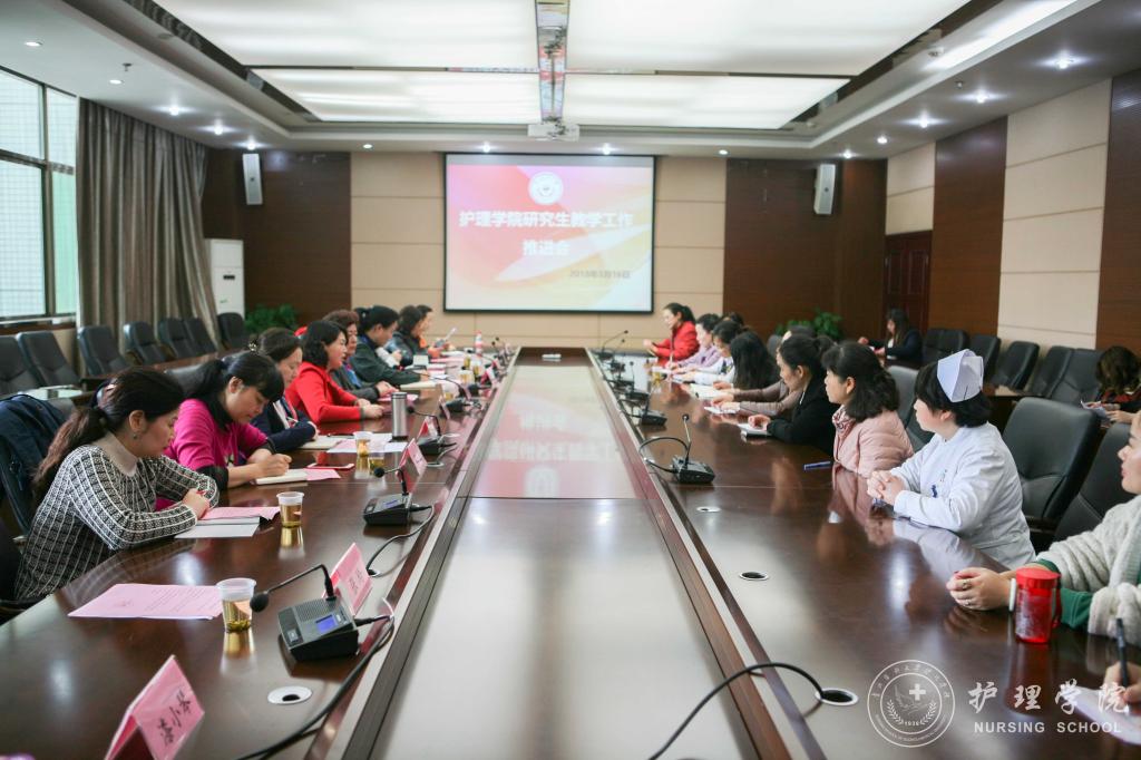 3月16日下午,太阳成集团tyc234cc研究生工作推进会在北校区行政楼6层连廊会议室召开。太阳成集团tyc234cc领导及全体专业教师、附属医院、第二、第三附属医院、附属肿瘤医院、附属白云医院、附属妇儿医院等多家附属及教学医院护理部主任、副主任及部分正高职称教师参加会议。