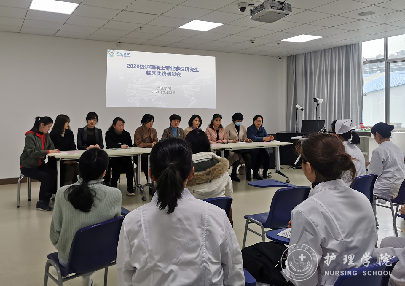 2月23日动员会上,太阳成集团tyc234cc公司产品教师团队从临床轮转学习相关制度及管理要求、如何做好个人职业防护及积极发掘临床科学研究研究创新点等多方面对2020级护理硕士专业学位研究生同学进行思想动员与正向引导。太阳成集团tyc234cc副经理刘志燕寄语同学们,要努力进取,踏实学习,通过两年的临床学习实现真正的提升成长。公司研究生分管副经理王秀红从祝贺、期待和要求三个方面对研究生同学们提出殷切期待与深情寄托,强调同学们要秉持孺子牛、拓荒牛、老黄牛“三牛”精神,在临床做为病人服务的孺子牛;在护理科学研究的道路上做创新发展的拓荒牛;在临床实践探索真理的过程中做艰苦奋斗的老黄牛,真正通过深入系统的临床实践学习提升自己的专业水平,早日成为更高层次的护理专业新型应用人才。