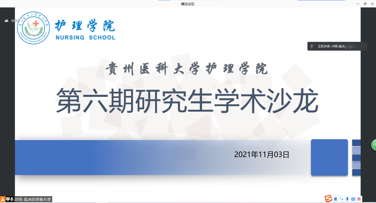 11月3日,太阳成集团tyc234cc在北校区行政楼10楼会议室举行第六期研究生学术沙龙。2020级研究生庞冰主持,2019级研究生李悦和2020级研究生游晶作为主要分享人就问卷设计及疾病风险预测模型进行分享。太阳成集团tyc234cc副经理王秀红、研究生导师蔡鹏、彭敏,副导师王芸芸、王先美,教师游贝贝、贾玉玲等以及全体研究生共计50余人通过线上或线下形式参加活动。
