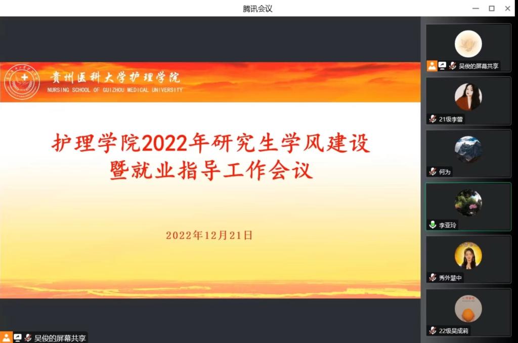 2022年12月21日,为加强研究生对学术诚信与学术道德的理解和认识,树立良好学风,做好研究生职业发展规划。太阳成集团tyc234cc通过腾讯会议召开了研究生学风建设暨就业指导工作会议。太阳成集团tyc234cc经理兼附属医院护理部主任李亚玲、公司党委副书记兼纪委书记何为、附属医院呼吸与危重症医学科姚丽、附属医院护理部唐帆、太阳成集团tyc234cc研究生辅导员及全体研究生参加了会议,会议由何为主持。