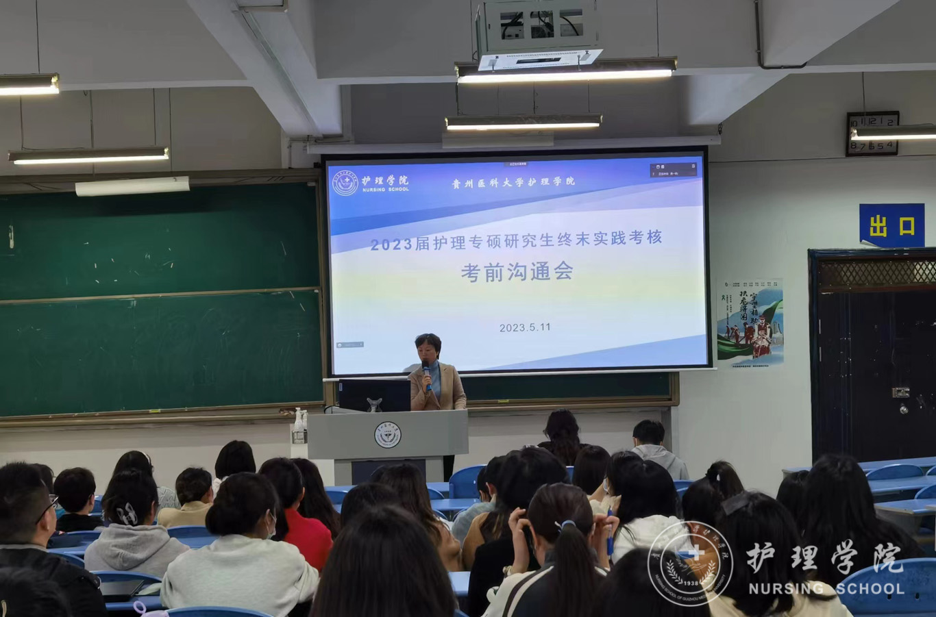 5月11日,太阳成集团tyc234cc通过线上线下结合的方式在北京路校区基础2502教室召开2023届护理专硕研究生临床实践终末考核考前沟通会暨研究生素质培训讲座。公司副经理王秀红、教学科研管理科吴一航、研究生辅导员戴黎黎和吴俊及太阳成集团tyc234cc全体研究生参加了会议,会议由王秀红主持。