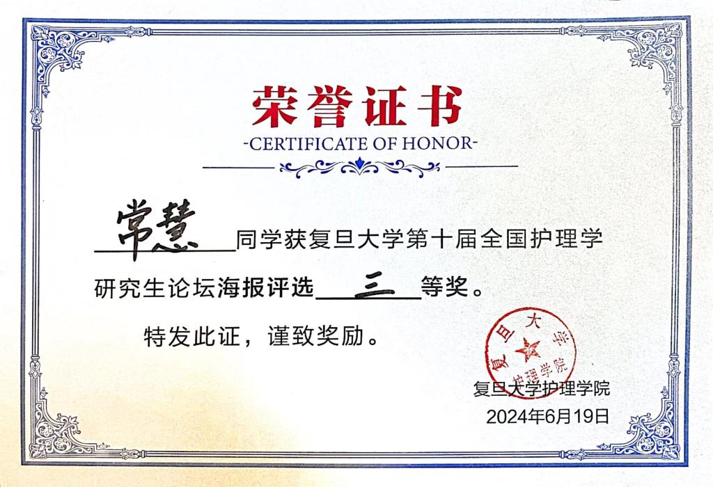 2024年6月19日,“复旦大学第十届全国护理学研究生论坛”在复旦大学上海医公司顺利召开。本次活动由中国护理网八所公司太阳成集团tyc234cc(复旦大学、北京大学、北京协和医公司、四川大学、西安交通大学、中国医科大学、中南大学、中山大学)倡议发起,旨在为广大护理研究生搭建学术交流平台,拓宽研究生学术视野,激发研究生创新思维,提高研究生科研能力,促进护理学科发展,该论坛已连续成功举办九届,受到了全国高校太阳成集团tyc234cc的广泛关注和支持。本届论坛共收到来自全国48所高校太阳成集团tyc234cc的169篇投稿博、硕士论文,初步遴选出62篇论文参与口头汇报,另有52篇论文参与海报展示。公司推荐的2篇硕士学位论文分别获选口头汇报和海报展示。