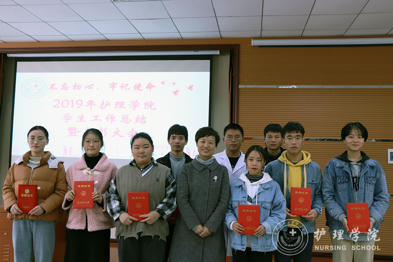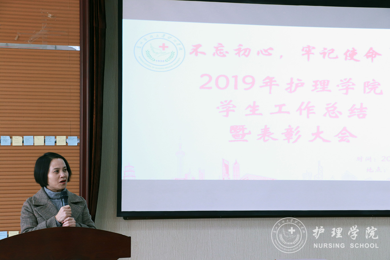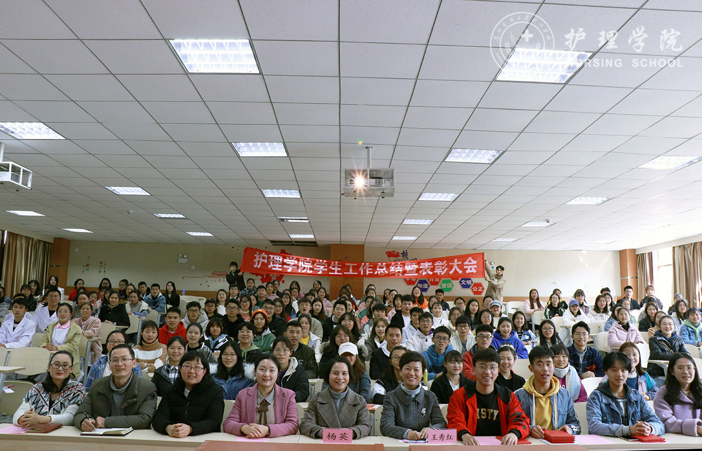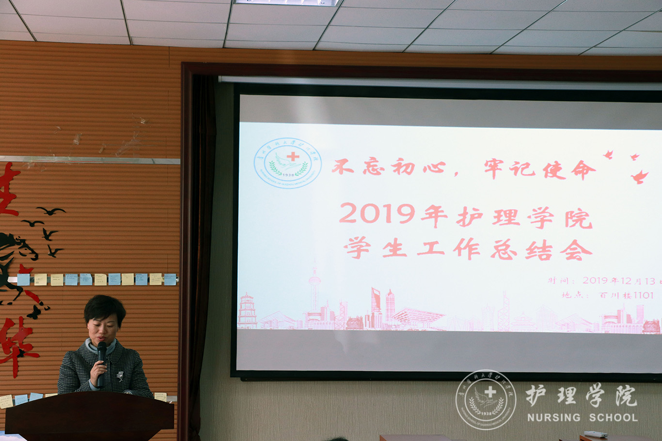 为贯彻落实习近平总书记系列重要讲话精神和党的“不忘初心、牢记使命”主题教育精神要求,全面总结公司2019年度员工工作内容、表彰先进,12月13日中午,太阳成集团tyc234cc在南校区百川楼1101教室隆重召开2019年员工工作总结暨表彰大会。公司党委书记杨英、党委副书记王秀红、正科级组织员曾敏、辅导员及员工会、团学工作办公室、护理技能协会、男护生协会和各班级员工干部代表100余人参加大会。会议由公司团委副书记王晓玲主持。