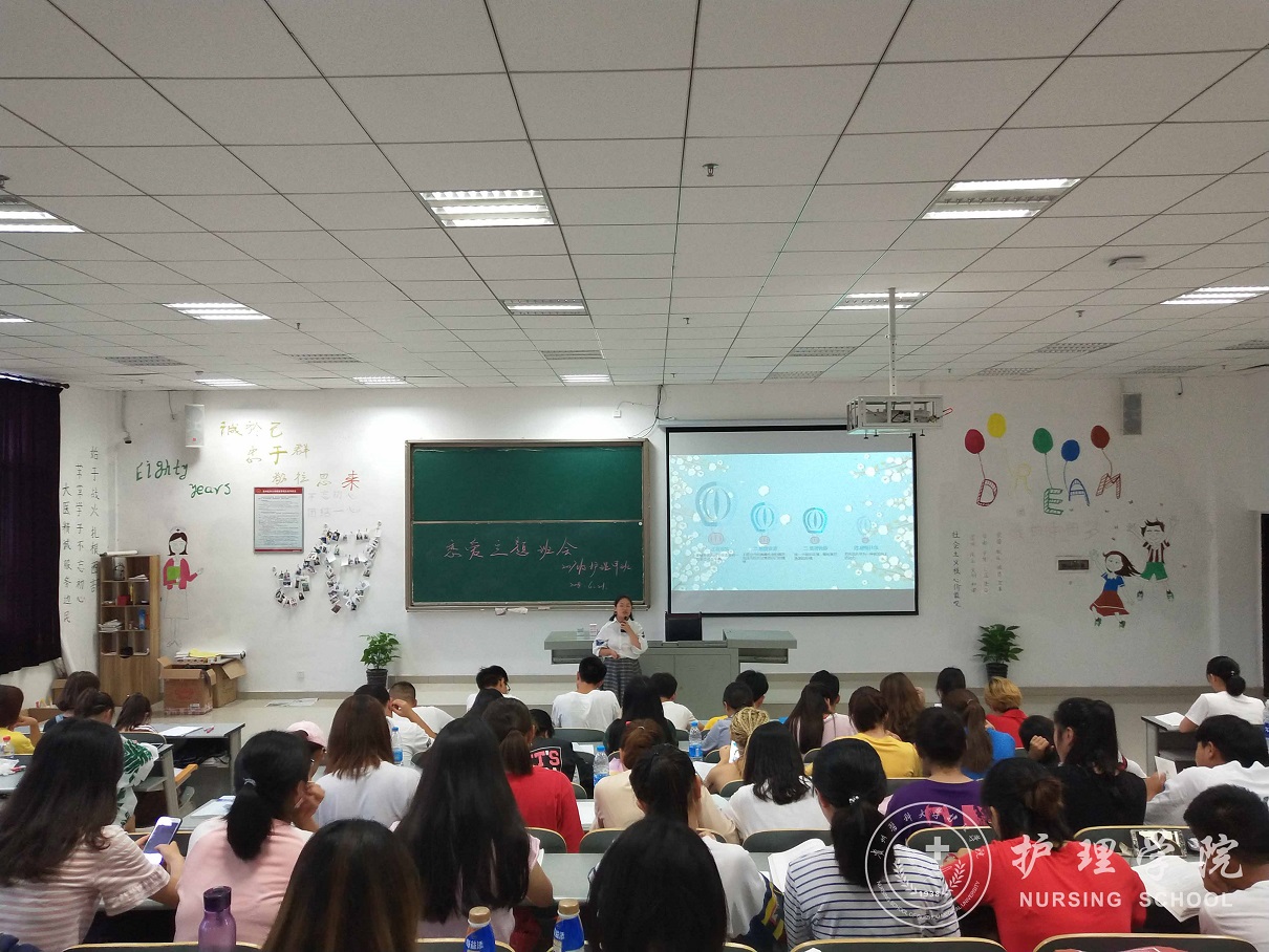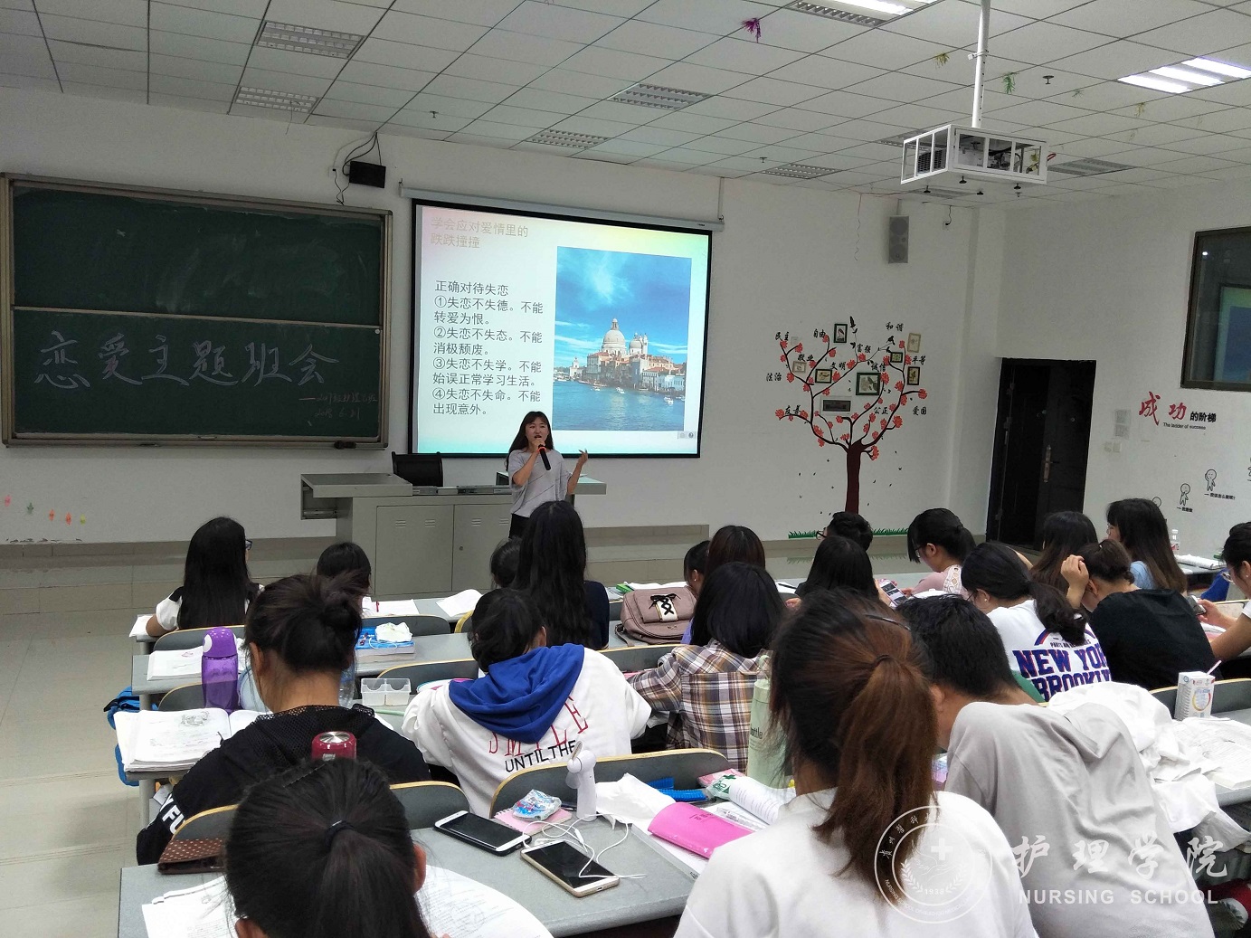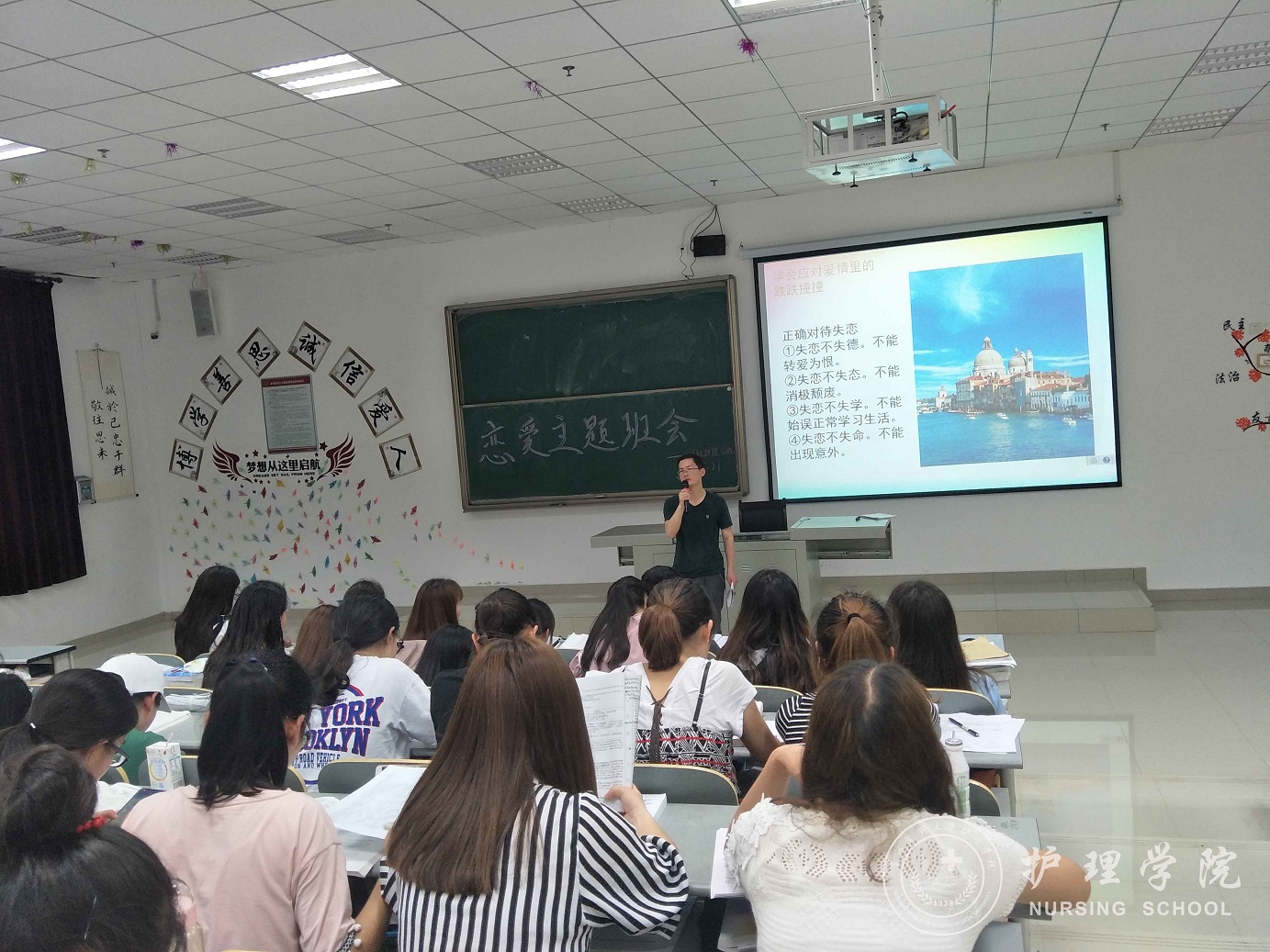 为了使同学们树立正确的恋爱观,6月21日晚,太阳成集团tyc234cc在南校区7404、7406教室召开了老员工恋爱主题班会。2017级辅导员马景瑶老师,2017级护理学甲班、乙班全体同学参加了此次班会。