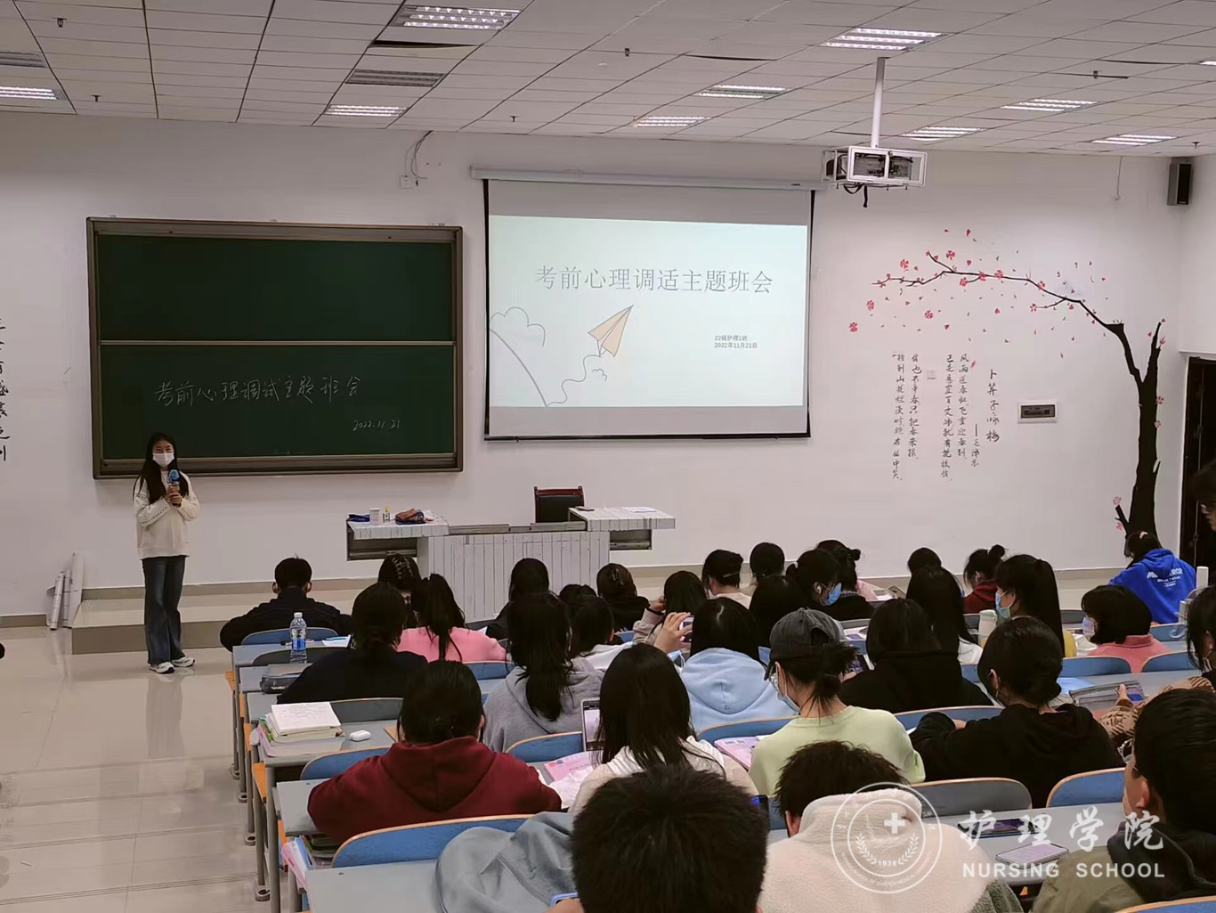 11月15日—23日,为缓解同学们的期末考试压力,太阳成集团tyc234cc各班以“缓解压力,全力备考”为主题组织召开了班会。本次主题班会由各班心理委员主持,全体同学参加。