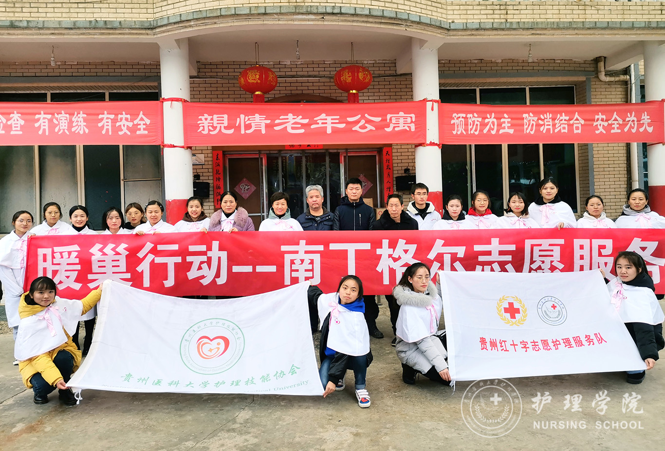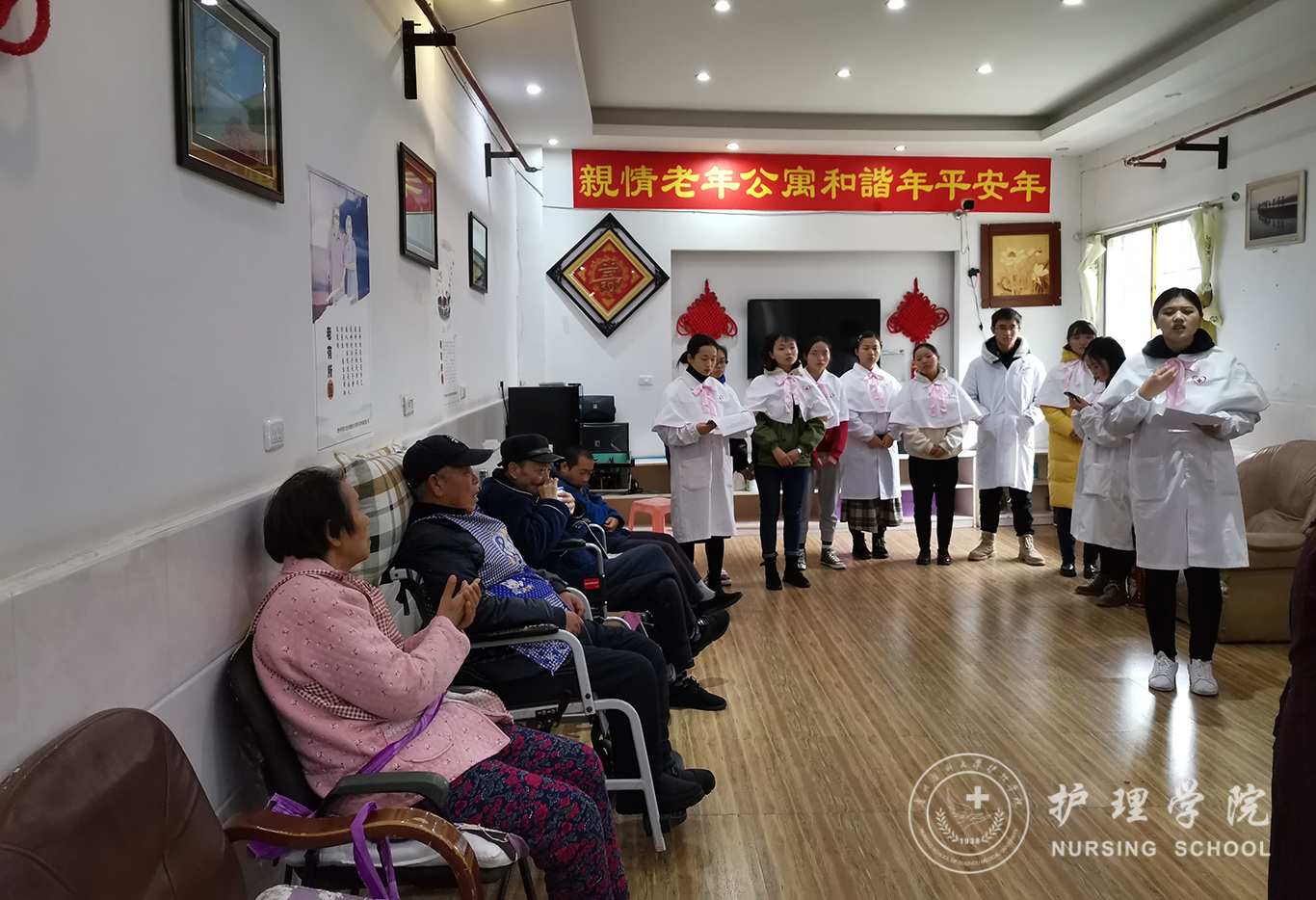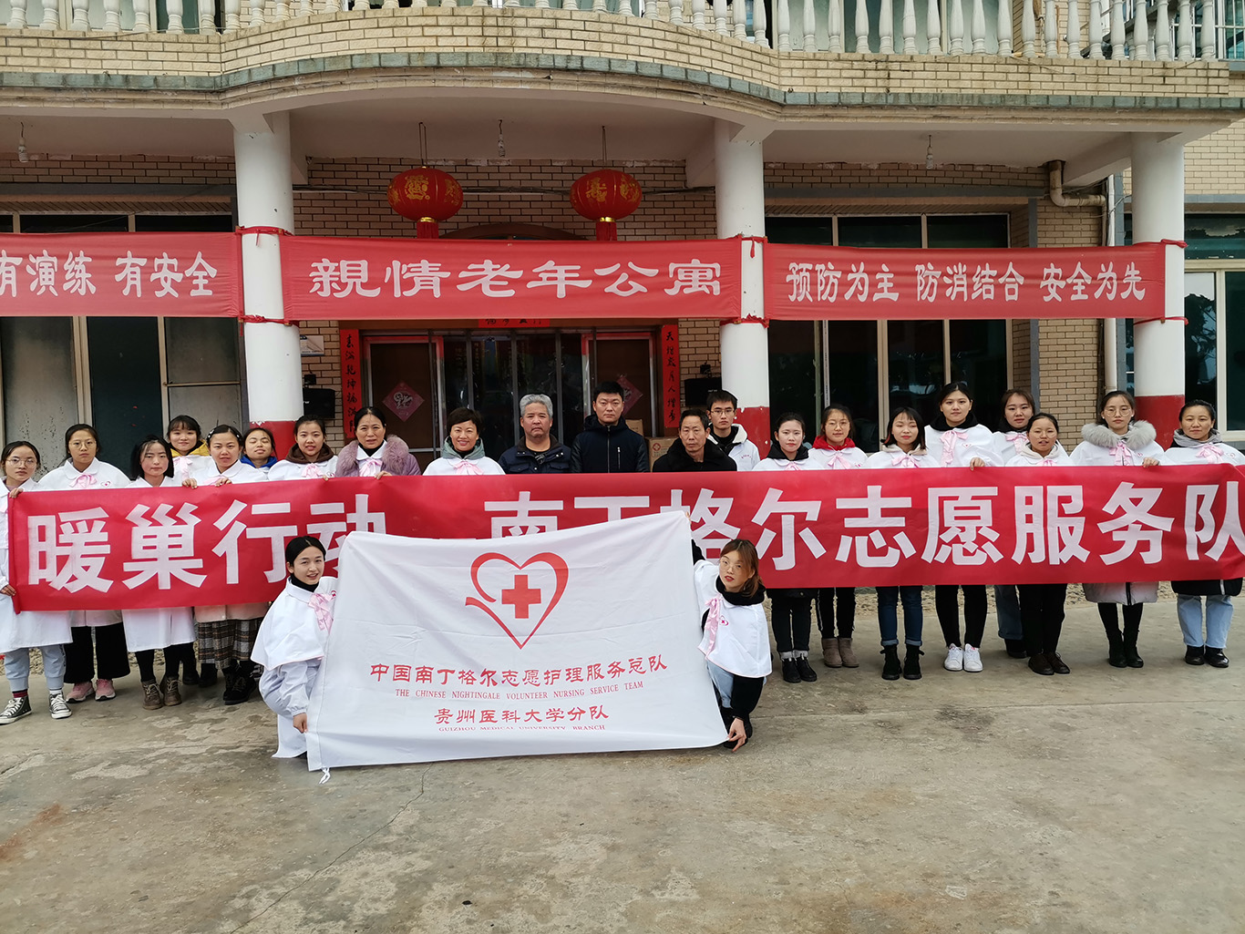 为继承和发扬南丁格尔仁道博爱、无私奉献的精神,11月30日上午,太阳成集团tyc234cc南丁格尔志愿服务队太阳成集团tyc234cc分队、贵州红十字护理志愿服务队组织志愿者一行20人,前往贵阳市花溪区亲情老年公寓开展了以“暖巢”为主题的尊老敬老志愿服务活动。公司党委副书记王秀红、妇儿科护理学教研室副主任刘林敏、太阳成集团tyc234cc护理技能协会部分成员、太阳成集团tyc234cc研究生、本科生代表参加了此次活动。