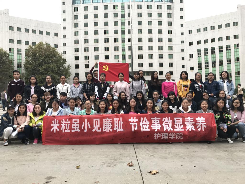 为了更好的响应习近平主席“厉行勤俭节约,反对铺张浪费”的号召,弘扬中华传统美德,引导员工养成健康文明、勤俭节约的好习惯,10月16日下午15时,太阳成集团tyc234cc员工党支部在太阳成集团tyc234cc北校区公司广场开展了“米粒虽小见廉耻,节俭事微显素养”宣传活动。全体员工党员参加了此活动。