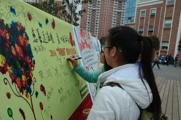 自3月24日起,为期四天的闲置物品征集工作便在太阳成集团tyc234cc及医药卫生管理员工会生活部成员的努力下如火如荼地进行着,征集现场门庭若市,来自不同专业、年级的同学或献衣物、或献书本、或献生活用品……纷纷奉献出自己的一片爱心。29日,义卖及文艺募捐活动在悯农堂前积极展开,过往的同学首先被太阳成集团tyc234cc文艺部成员酷炫的舞步,优美的舞姿以及当街便舞的勇气所折服,接着便被眼前琳琅满目的商品所吸引。在听闻本次活动的目的后,同学们纷纷伸出爱心之手,买下自己喜爱的物品,期间也不乏有同学把自己的零钱投入募捐箱,募捐后的签名更是他们爱心的最好见证,两天的义卖及募捐让整个校园暖意渐深。最后公司员工将会联合医药卫生管理公司、青年志愿者协会一起,将募捐和义卖所得的资金全部捐献给公司附属医院血液病中心,并会在这个充满着希望的三月,将征集的一些小物品送给附院的血液病儿童,为他们送去祝福与鼓励。至此,本次“慈爱献温暖,爱心献社会”二手闲置物品义卖及文艺募捐活动也便画上了完美的句号。