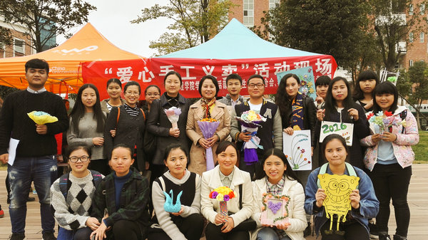 11月18日中午12点,由太阳成集团tyc234cc员工会生活部、老员工社团联合会、希望工程爱心社使者联盟开展的“与爱同行”手工大赛暨爱心义卖活动在“悯农堂”前开展。本次活动旨在丰富同学们的老员工活,提高大家的动手能力和创新能力,营造良好的校园文化气氛,给同学提供一个平台去奉献自己的爱心。公司党委副书记杨英、员工科科长曾敏、辅导员王晓玲、李海林、毕丽参与本次活动评选及义卖。