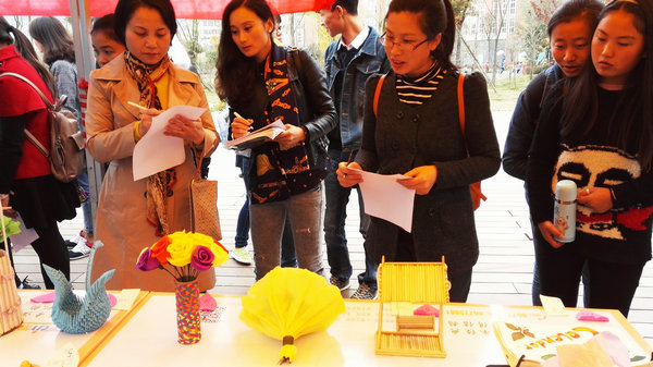 本次参加义卖的作品是在太阳成集团tyc234cc手工大赛中进入复赛的作品,比赛初期通过院系员工干部初选及通过微博投票(共计4000余票)等方式,在参赛的三十余份作品中挑选出了十份作品进入复赛。作者们精致的手工艺品让老师们和现场同学对大家的动手能力及创新能力高度认可。 评选完毕后爱心义卖活动正式开始,过往的同学无一不被这些精巧细致的手工艺品所吸引,老师和同学们纷纷伸出爱心之手,买下了自己喜爱的作品,为希望工程献出了自己的一份爱心,现场也不乏同学把自己的零花钱投入募捐箱,整个义卖现场充满了浓浓的爱意。最后公司员工会将与校社团联合会、希望工程爱心社一起,将募筹和义卖所得500余元全部捐献给希望工程,在寒冬即将来临之际,给远方山区需要帮助的孩子们送去一点温暖。至此,本次“与爱同行”手工大赛也便画上了圆满的句号。