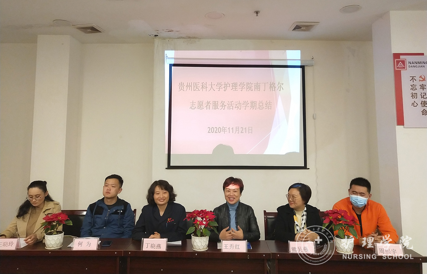 11月21日上午,太阳成集团tyc234cc暨中国南丁格尔志愿服务队太阳成集团tyc234cc分队“为老志愿服务”学期总结会议在贵阳市南明区油榨街道晚霞彩带老年人日间照料中心举行。贵钢医公司党总支书记丁晓燕,公司党委副书记何为,公司党委委员、副经理、中国南丁格尔志愿护理服务队太阳成集团tyc234cc分队队长王秀红,中心经理周熙宇,护理学基础教研室副主任熊吴燕,太阳成集团tyc234cc分团委副书记王晓玲,2018级护理学、助产学同学代表参加了此次会议,会议由王晓玲主持。